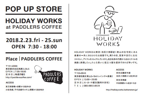 HOLIDAY WORKS POP UP STORE @PADDLERS COFFEE