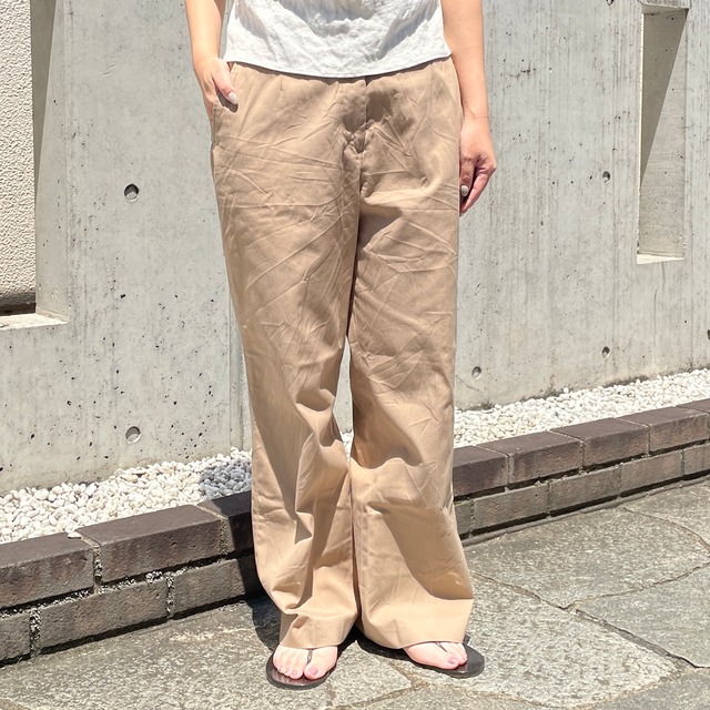 U.S.ARMY、90年代頃のトラウザーズ(チノパン、スラックス)。 会計年度は95年。コットン50%、ポリエステル50%。 タンカラーのトラウザーズ。 一年を通して重宝するミリタリーチノ。 キレイなストレートシルエット。 女性用に作られていて、タックが入り股上も深いので履きやすく、取り入れやすいミリタリーアイテム。 状態は、ウエストの内側に前所有者のネームと思われるペン書き。その他、全体的に多少の使用感はありますが、目立ったダメージや汚れはなく着用に問題はありません。 取扱店舗:祐天寺店 model 155cm 表記サイズ:12(W29) ウェスト:72cm 股上:31cm 股下:67cm 裾幅:25cm #2506092