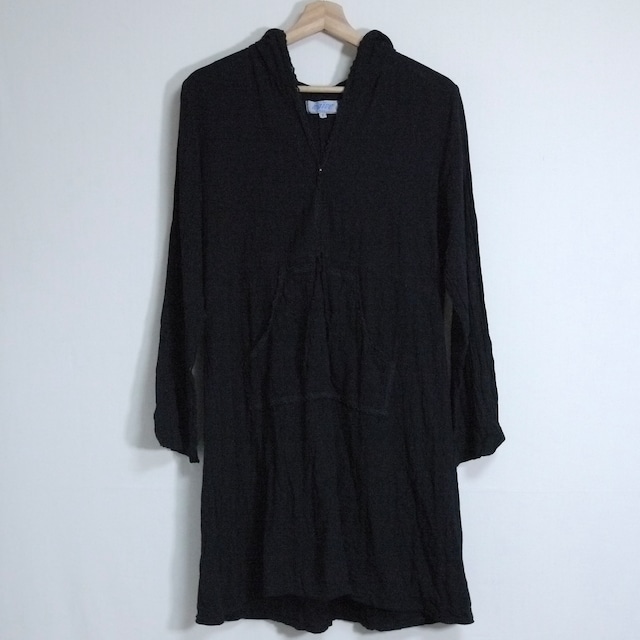 シアージャケット。 アメリカ製。ポリエステル100%。 ブラックカラーのシアージャケット。 透け感のある素材感にマッチしたデザインで上品な印象。 ゆったりとしたシルエットでシャツのようにも着用可能。 フロントは1箇所、紐で留めるデザインで両サイドに深めのスリット。 これからの季節に日除け対策としても活躍するアイテム。 状態は、経年による使用感が多少ありますが、目立った汚れやダメージはなく着用に問題はありません。 model 155cm 取扱店舗:祐天寺店 表記サイズ:18 肩幅:49cm 身幅:67cm 着丈:83cm 袖丈:60cm #2604156