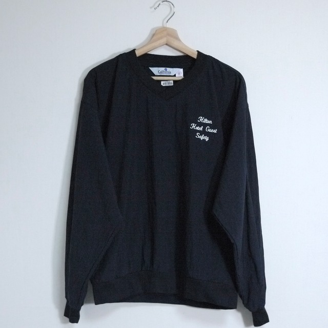 California OUTERWEARのプルオーバーナイロンジャケット。 アメリカ製。ナイロン100%。 ブラックカラーのプルオーバーナイロンジャケット。 左胸にワンポイントの刺繍デザイン。 程よいVネック、両脇にポケット。 ライトアウターとしてもトップスとしても着用可能。 アウトドシーンにもオススメ。 状態は、経年による多少の使用感はありますが、目立ったダメージや汚れはなく着用に問題はありません。 取扱店舗:祐天寺店 表記サイズ:SM 肩幅:59cm 身幅:61cm 着丈:67cm 袖丈:60.5cm #2602272