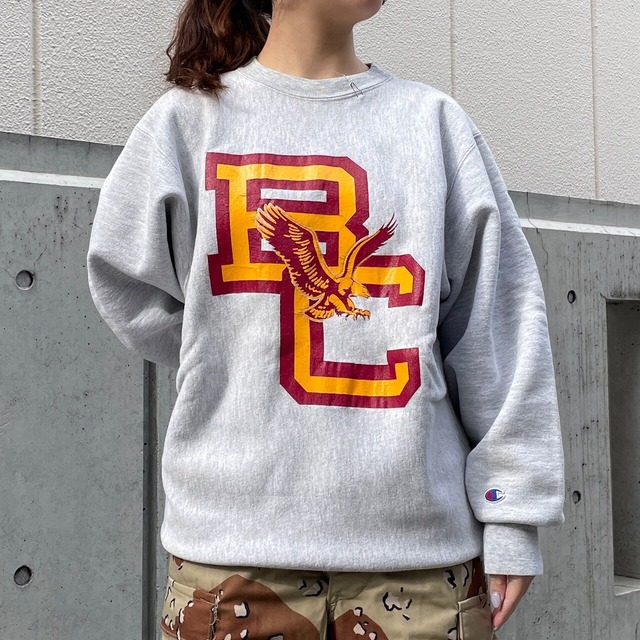 Champion、90年代頃のリバースウィーブ。 刺繍タグ。アメリカ製。コットン89%、アクリル8%、レーヨン3%。 グレーカラーのリバースウィーブ。 好配色なカレッジプリント。 カレッジらしいグラフィックデザイン。 特有のゆったりとしたシルエットで様々なスタイルに取り入れやすいアイテム。 近年の人気もあり枯渇しているリバースウィーブなので、お探しの方にはオススメです。 状態は、左裾のリブに薄ら色移りのような汚れ。左袖と腰付近に小さな薄らとした汚れ。その他、全体的に経年による使用感は多少ありますが、目立った汚れやダメージはなく着用に問題はありません。 model 155cm,153cm,167cm 取扱店舗:祐天寺店 表記サイズ:L 肩幅:46.5cm 身幅:55cm 着丈:68.5cm 袖丈:61cm #2403232