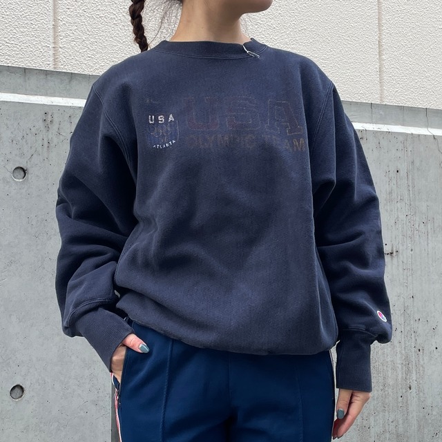 Champion、90年代頃のリバースウィーブ。 刺繍タグ。メキシコ製。コットン90%、ポリエステル10%。 ネイビーカラーのリバースウィーブ。 アトランタオリンピックの関連アイテム。 ロゴやエンブレムもデザインされた豪華なグラフィック。 特有のゆったりとしたシルエットとデザインがマッチ。 近年の人気もあり枯渇しているリバースウィーブなので、お探しの方にはオススメです。 状態は、経年による使用感が多少ありますが、目立った汚れやダメージはなく着用に問題はありません。 model 155cm 取扱店舗:祐天寺店 表記サイズ:M 肩幅:46cm 身幅:58cm 着丈:60.5cm 袖丈:61cm #2404116
