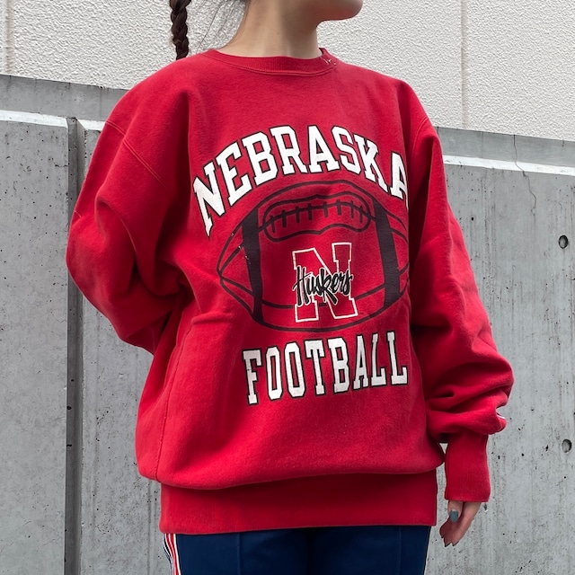 Champion、90年代頃のリバースウィーブ。 刺繍タグ。アメリカ製。コットン90%、ポリエステル10%。 レッドカラーのボディにカレッジプリントのリバースウィーブ。 カレッジらしいグラフィックの3段プリント。 特有のゆったりとしたシルエットで様々なスタイルに取り入れやすいアイテム。 近年の人気もあり枯渇しているリバースウィーブなので、お探しの方にはオススメです。 状態は、プリント部分に小さな汚れ。その他、経年による使用感が多少ありますが、目立った汚れやダメージはなく着用に問題はありません。 model 155cm,153cm 取扱店舗:祐天寺店 表記サイズ:L 肩幅:51.5cm 身幅:59.5cm 着丈:67.5cm 袖丈:67cm #2309278