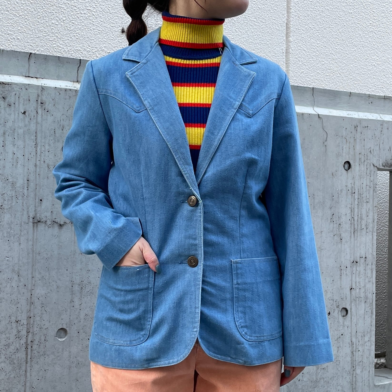 ライトブルーカラーのジャケット。