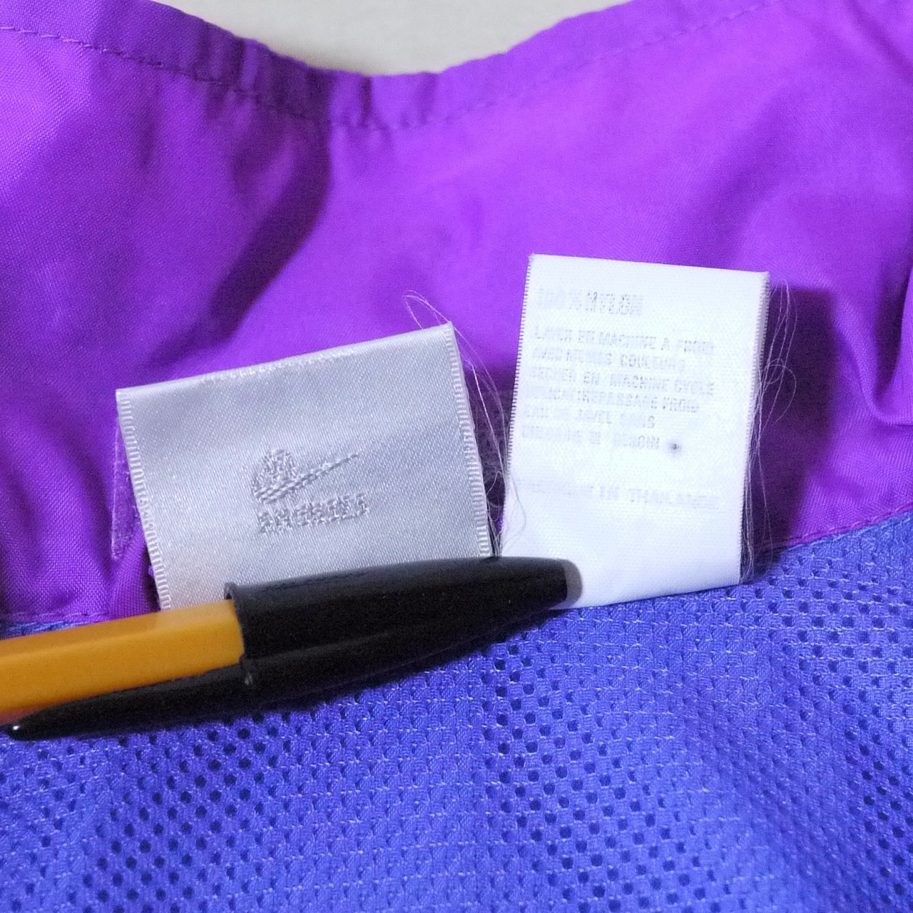 銀タグ。ナイロン100%。