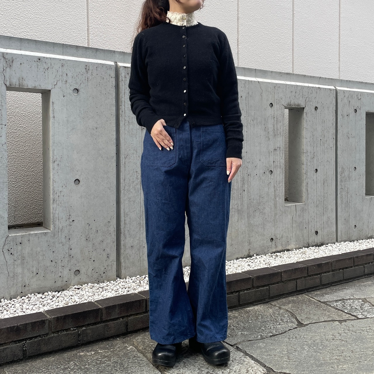 フリルやレースデザインが女性らしさを演出してくれるのでメンズライクなアイテムとも相性がよくオススメ。
