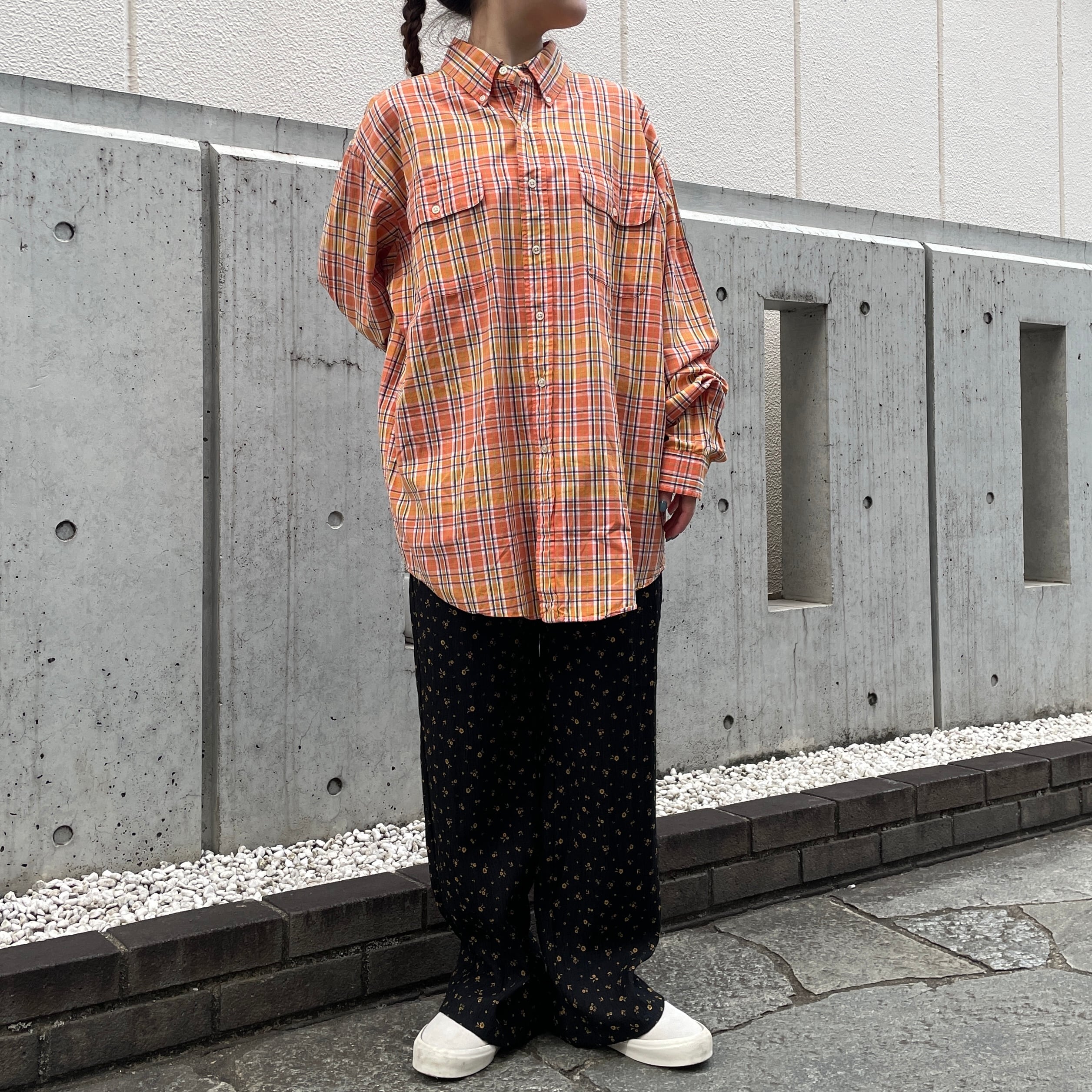 オレンジ系カラーのチェック柄B.D.シャツ。