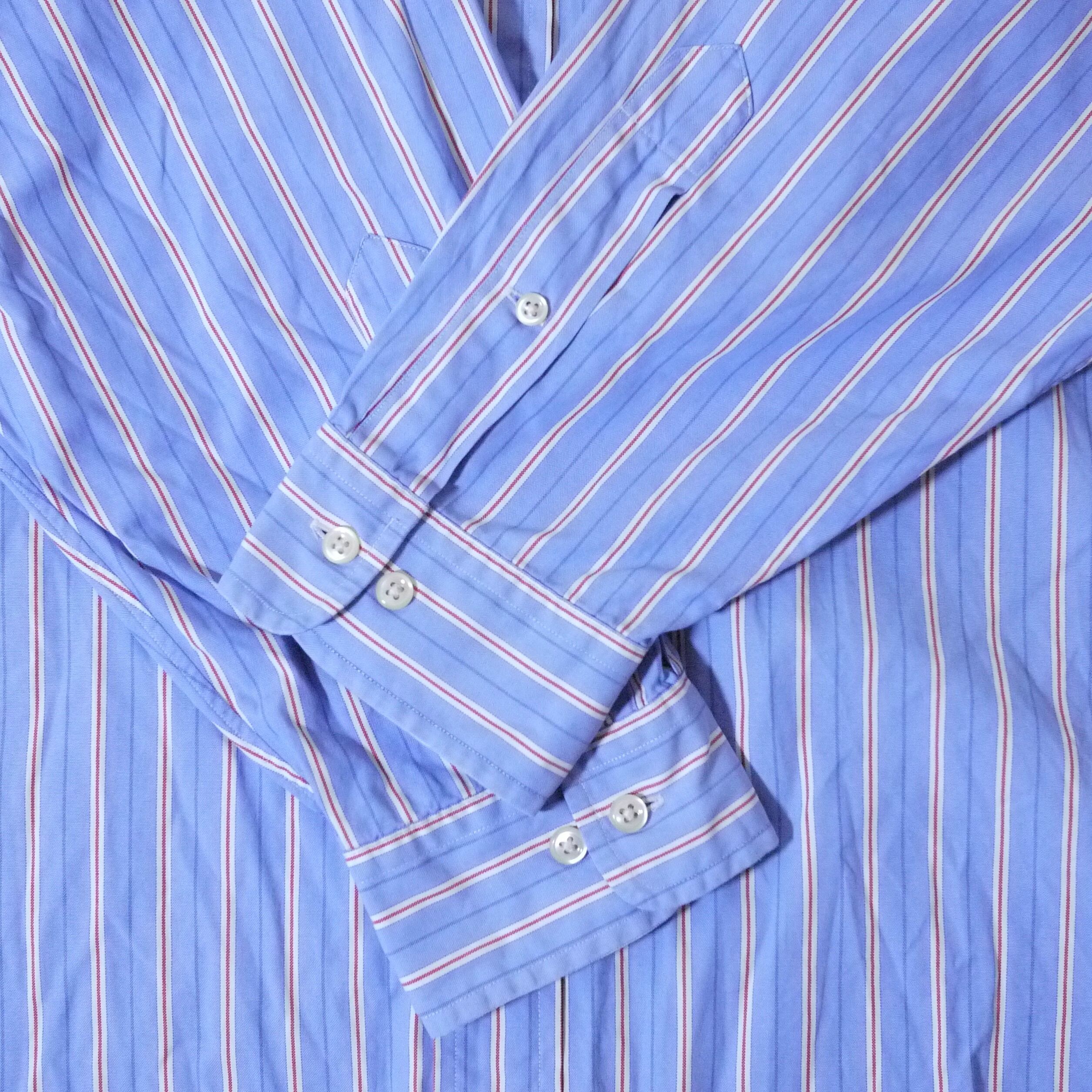 ブルー系カラーのストライプ柄B.D.シャツ。