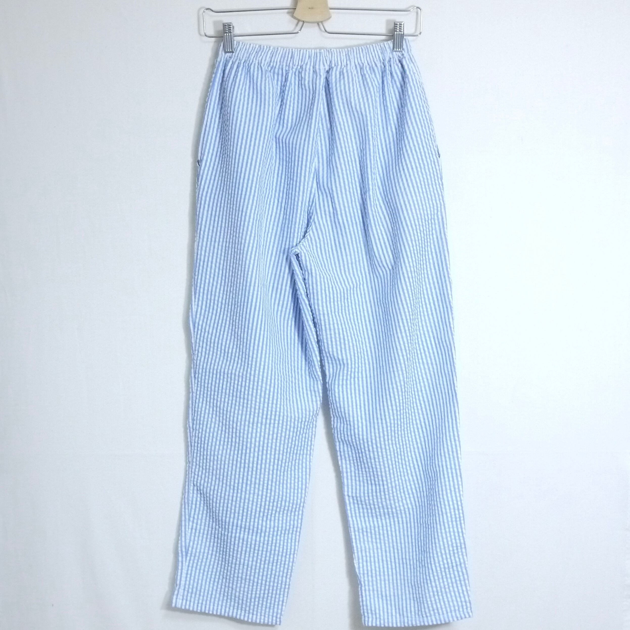ホワイト×ライトブルーのストライプ柄イージーパンツ。