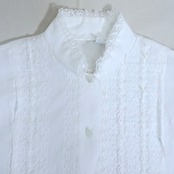 ネックやフロントのフリルデザインが女性らしさを演出してくれるのでメンズライクなアイテムとも相性がよくオススメ。