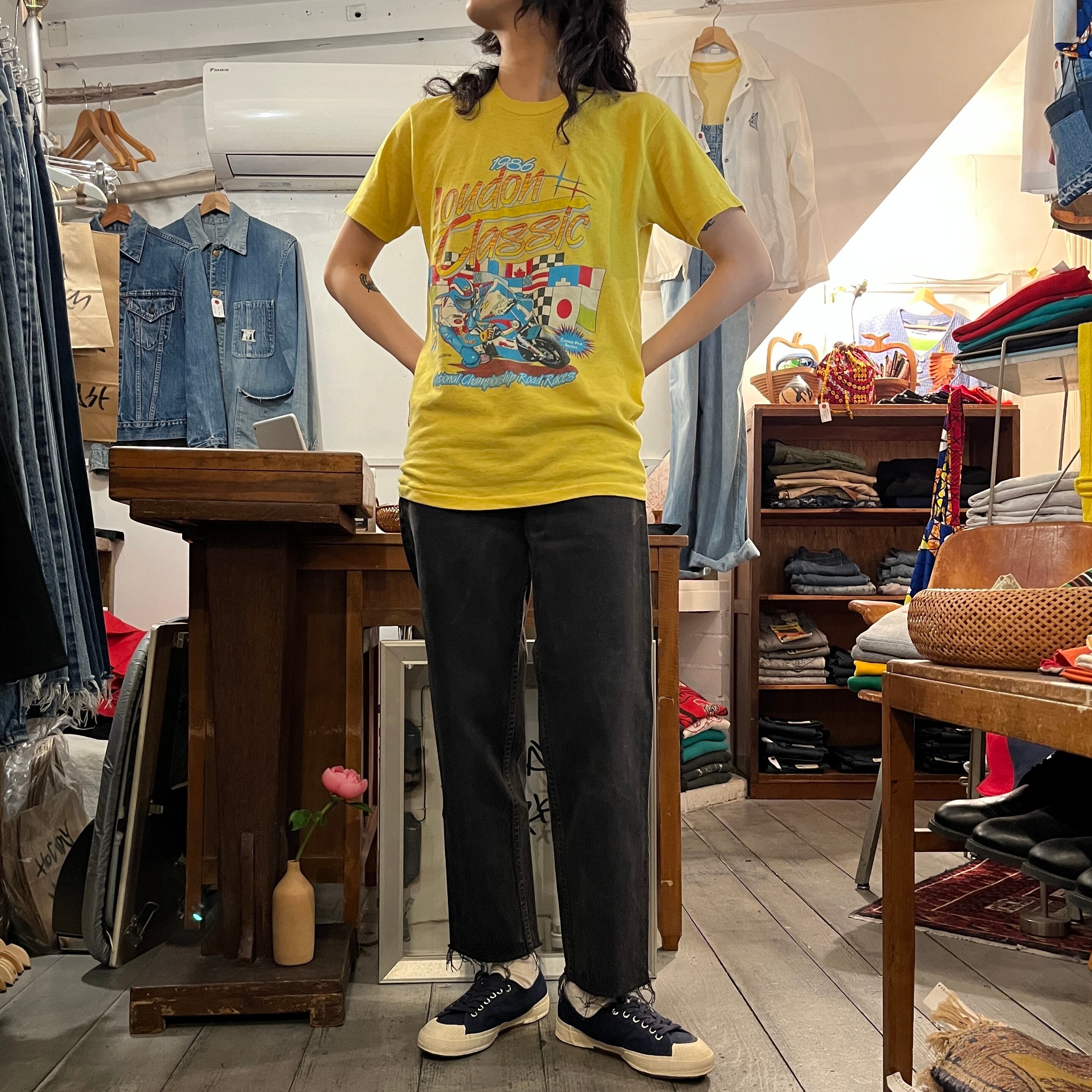 イエローカラーのTシャツ。