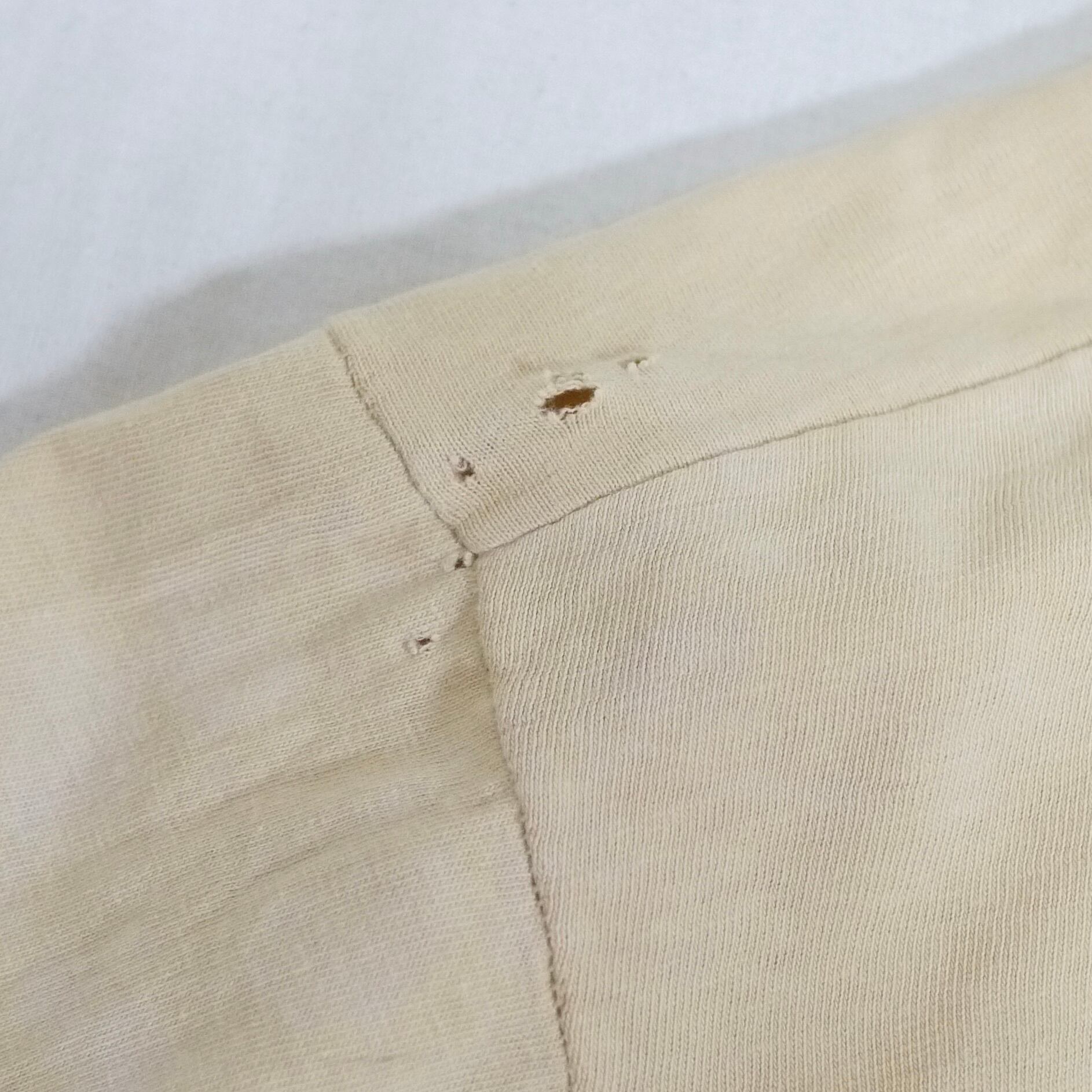 状態は、両肩に複数の細かなピンホール。左袖にピンホール。右袖に細かなペンキ汚れ。裾付近に薄ら汚れ。その他、全体的に経年による使用感がありますが、着用に問題はありません。コンディションにご理解頂きアジとして捉えて頂ける方にお願いします。