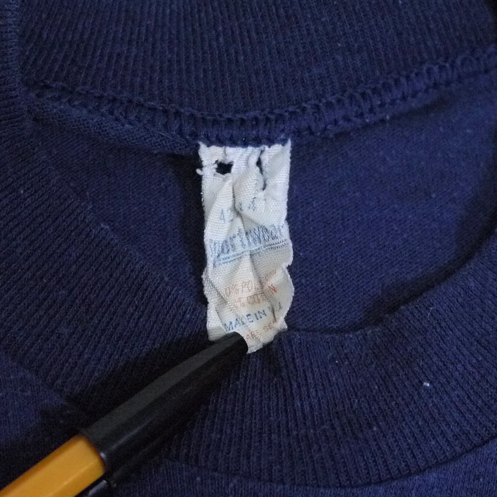 状態は、プリント部分に1ヶ所ピンホール。全体的に毛玉ができ始めています。その他、経年による使用感はありますが、着用に問題はありません。