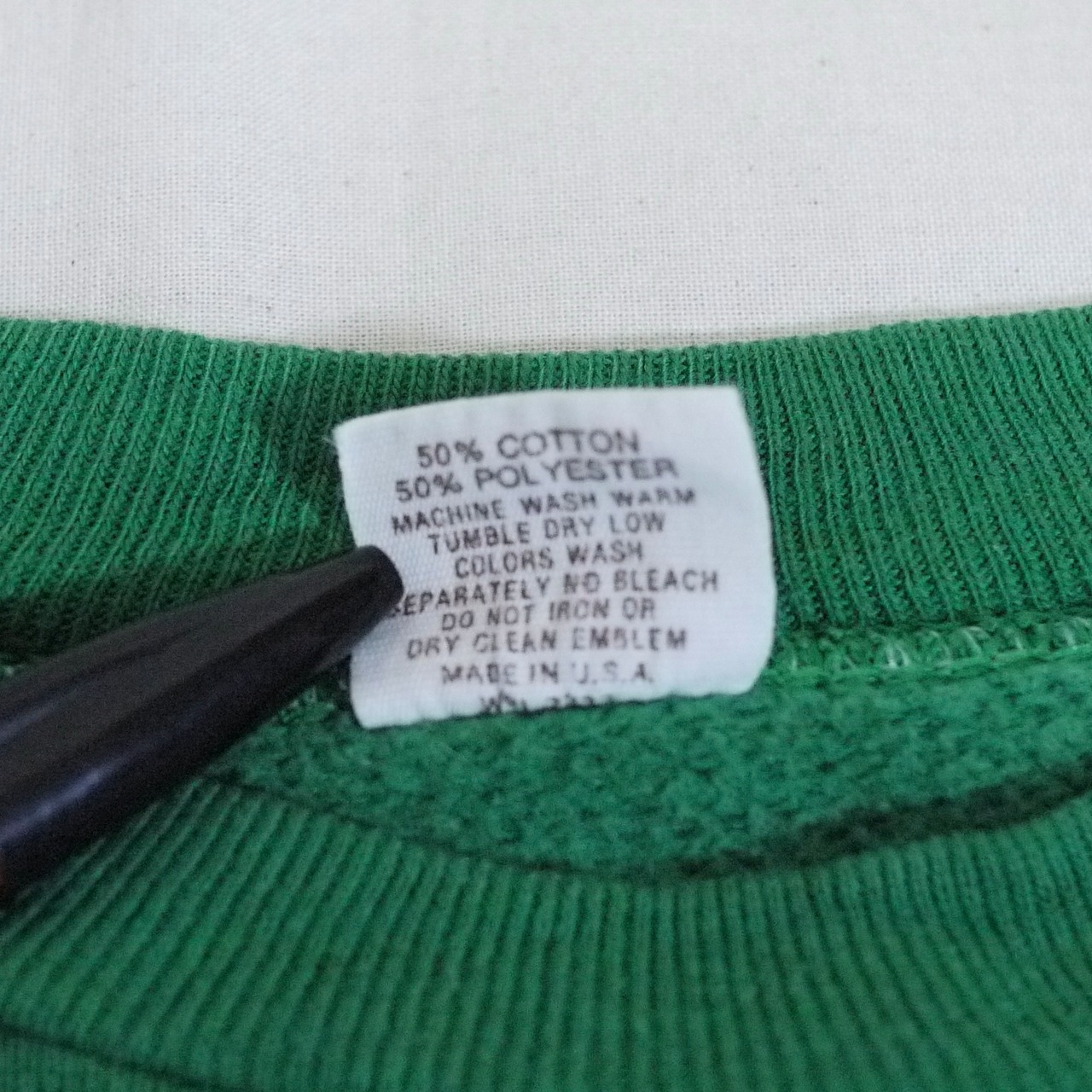 アメリカ製。コットン50%、ポリエステル50%。