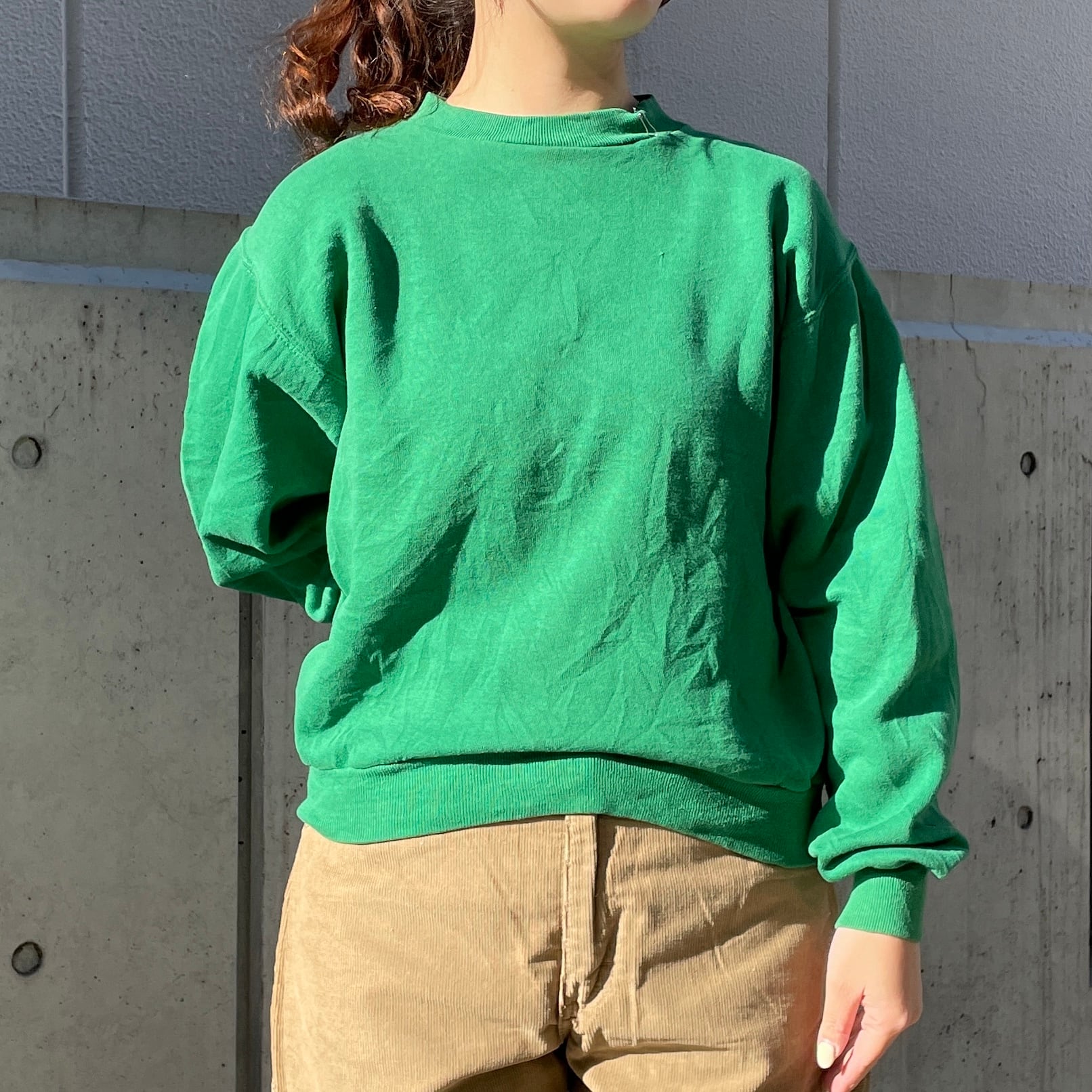 グリーンカラーのスウェット。