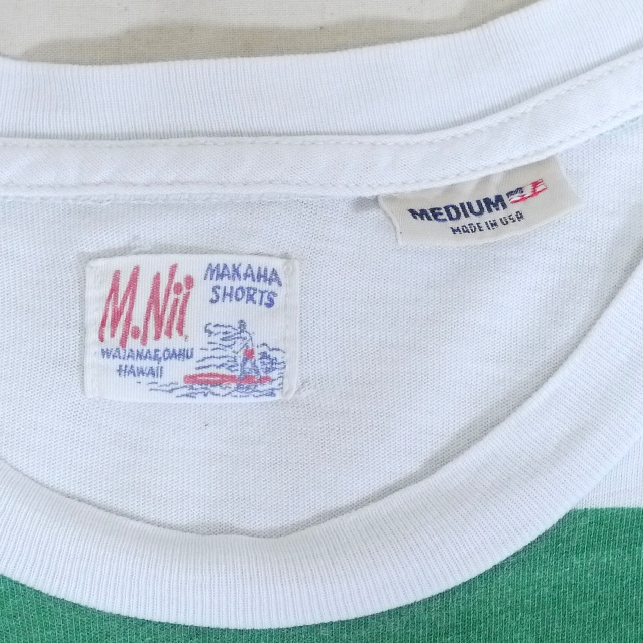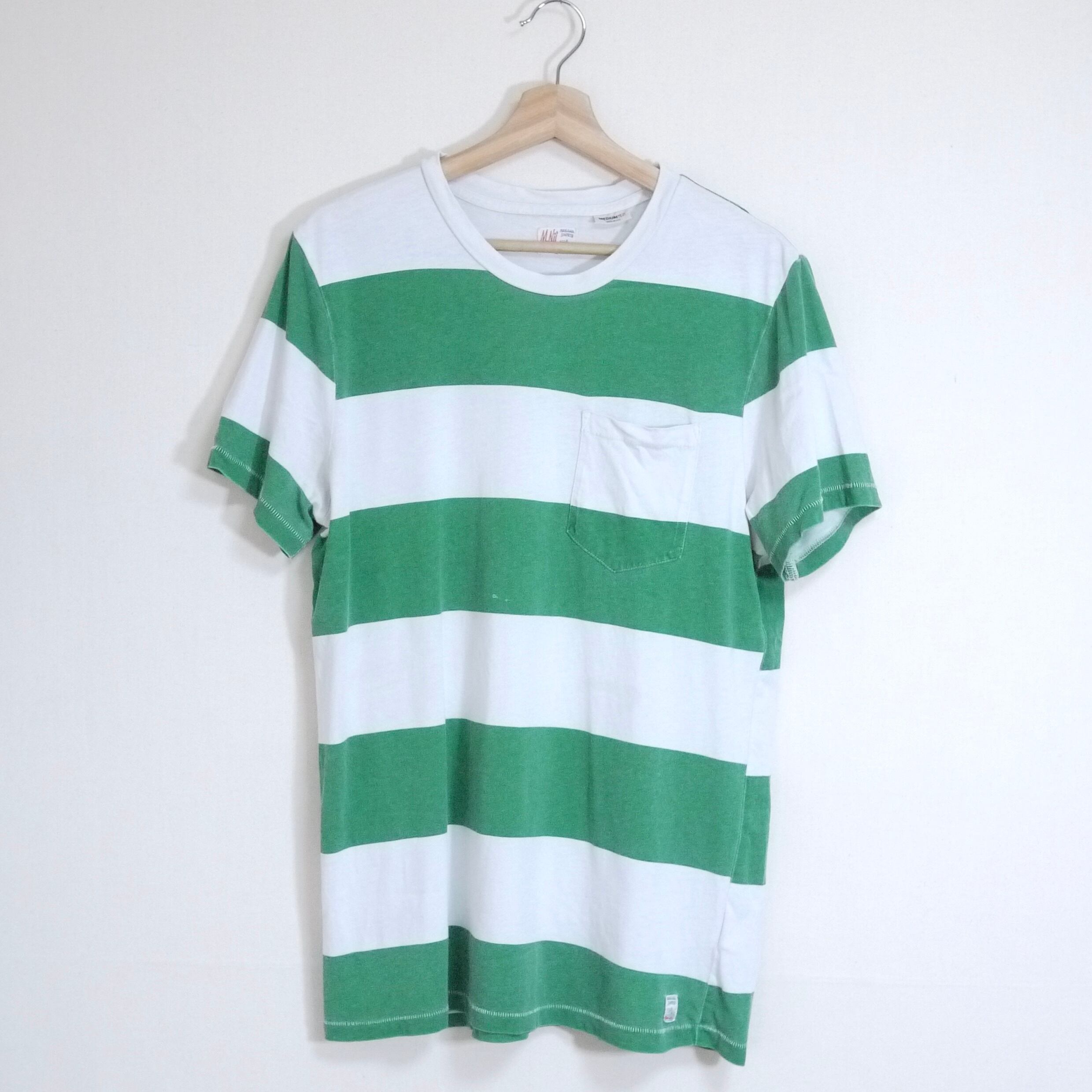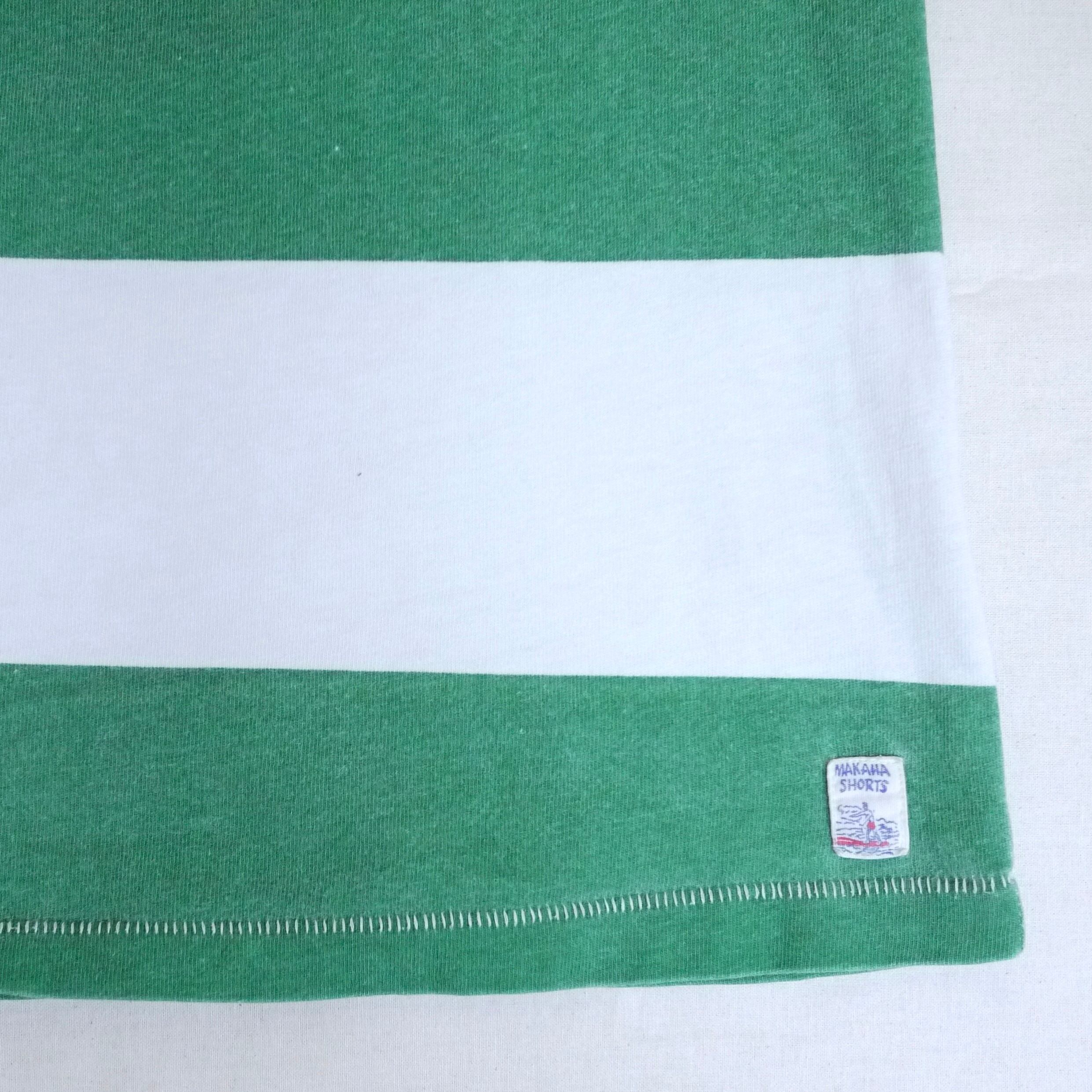 ホワイト×グリーンのボーダー柄Tシャツ。