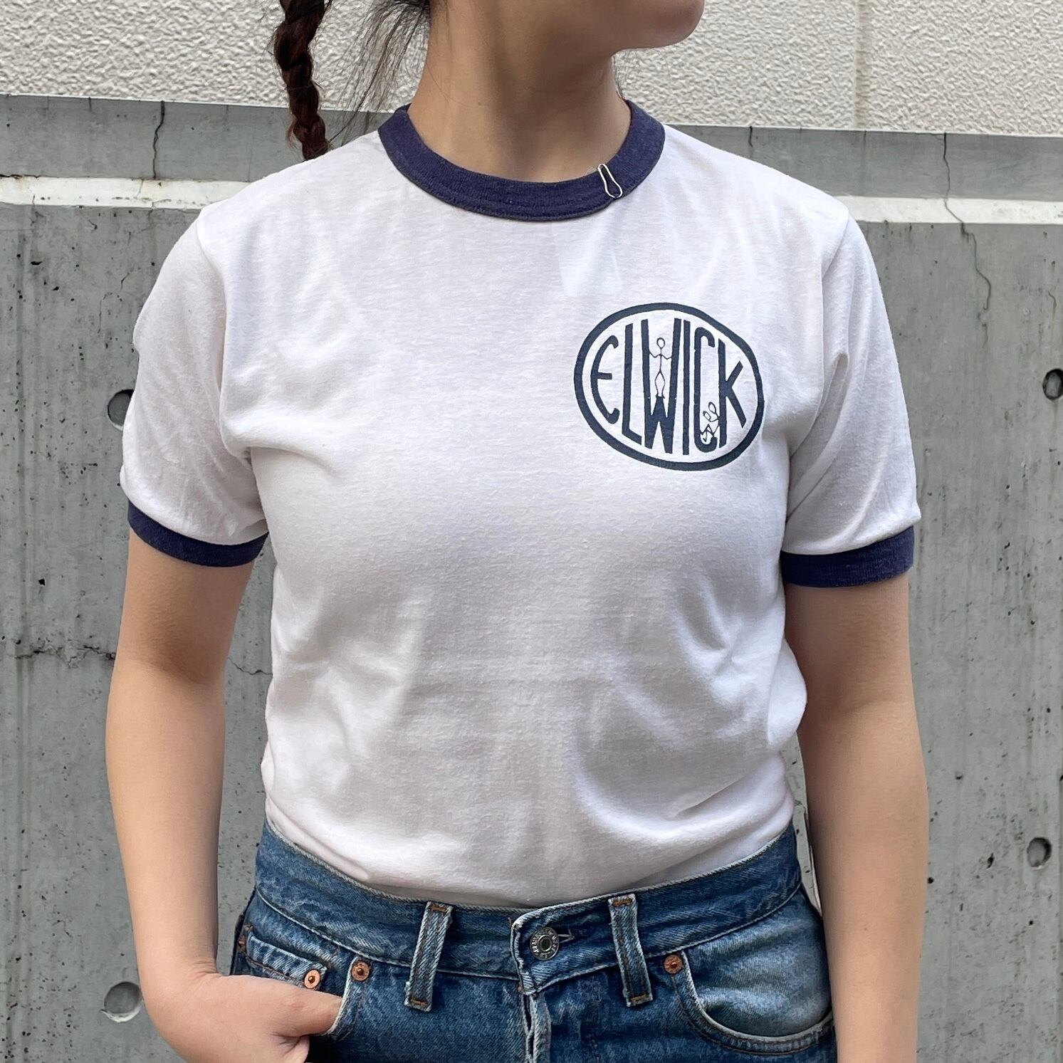 ホワイトカラーのボディにネイビーのリンガーTシャツ。