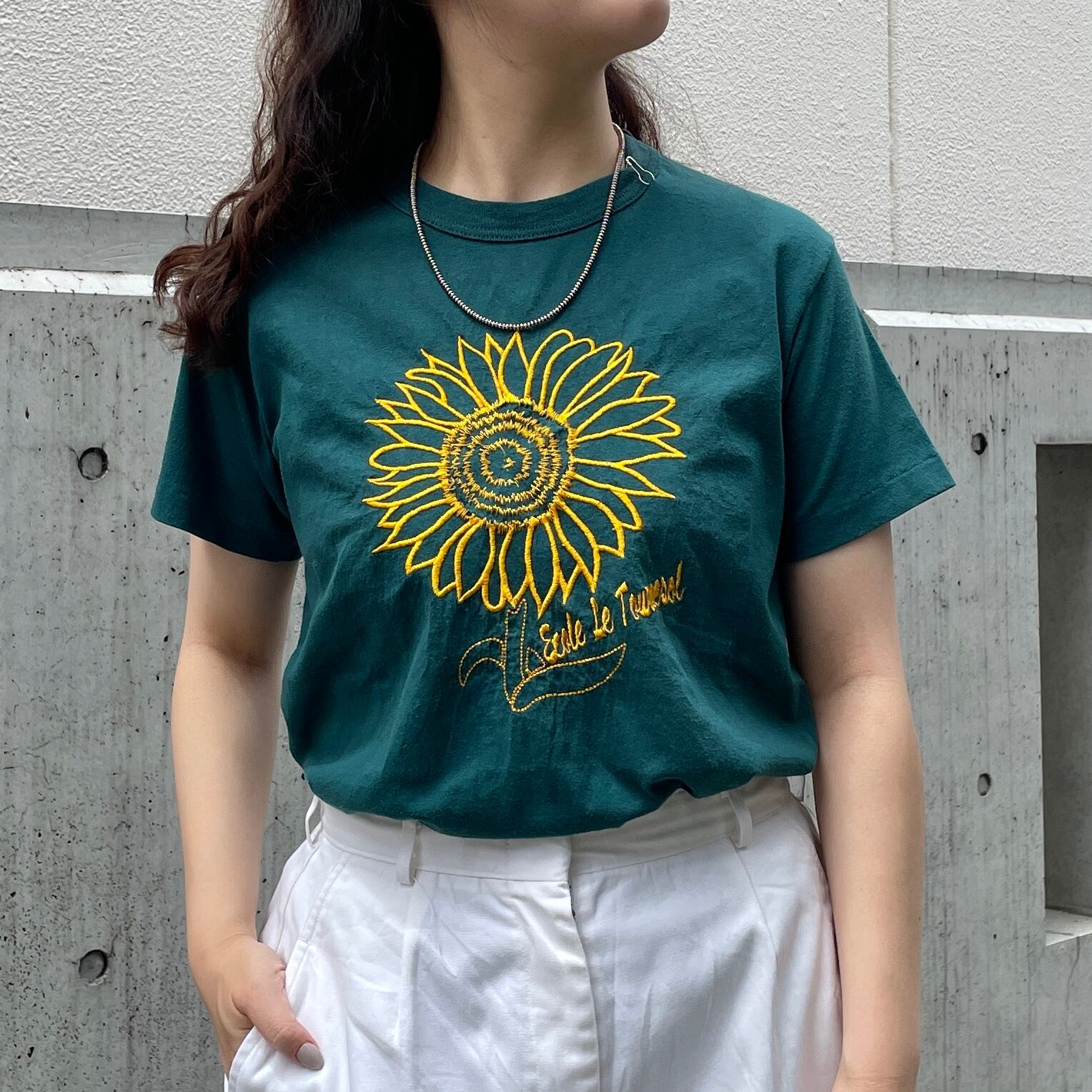 グリーンカラーのTシャツ。