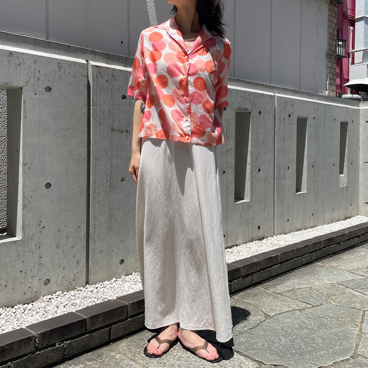 シルクのような滑らかな生地感とオープンカラーでゆったりとしたボックスシルエットがマッチしています。