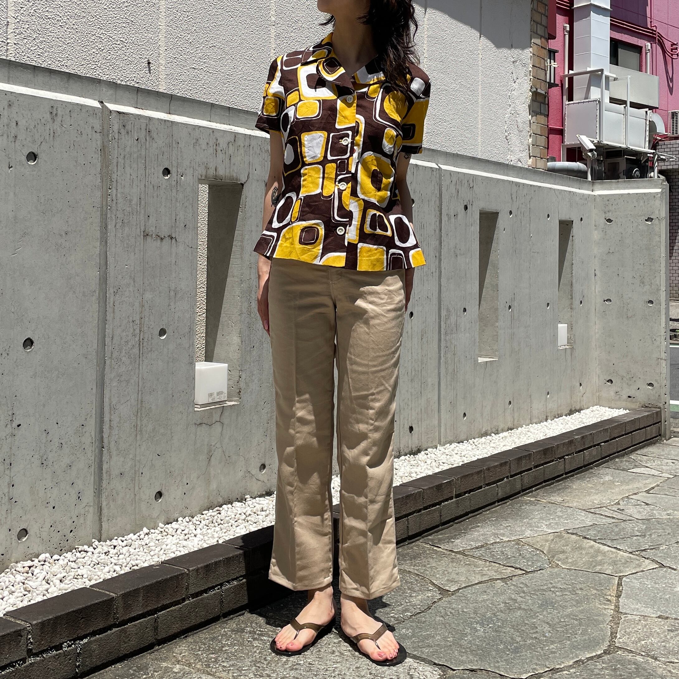 イエロー、ホワイトの様々なドットやスクエアがデザインされた総柄。