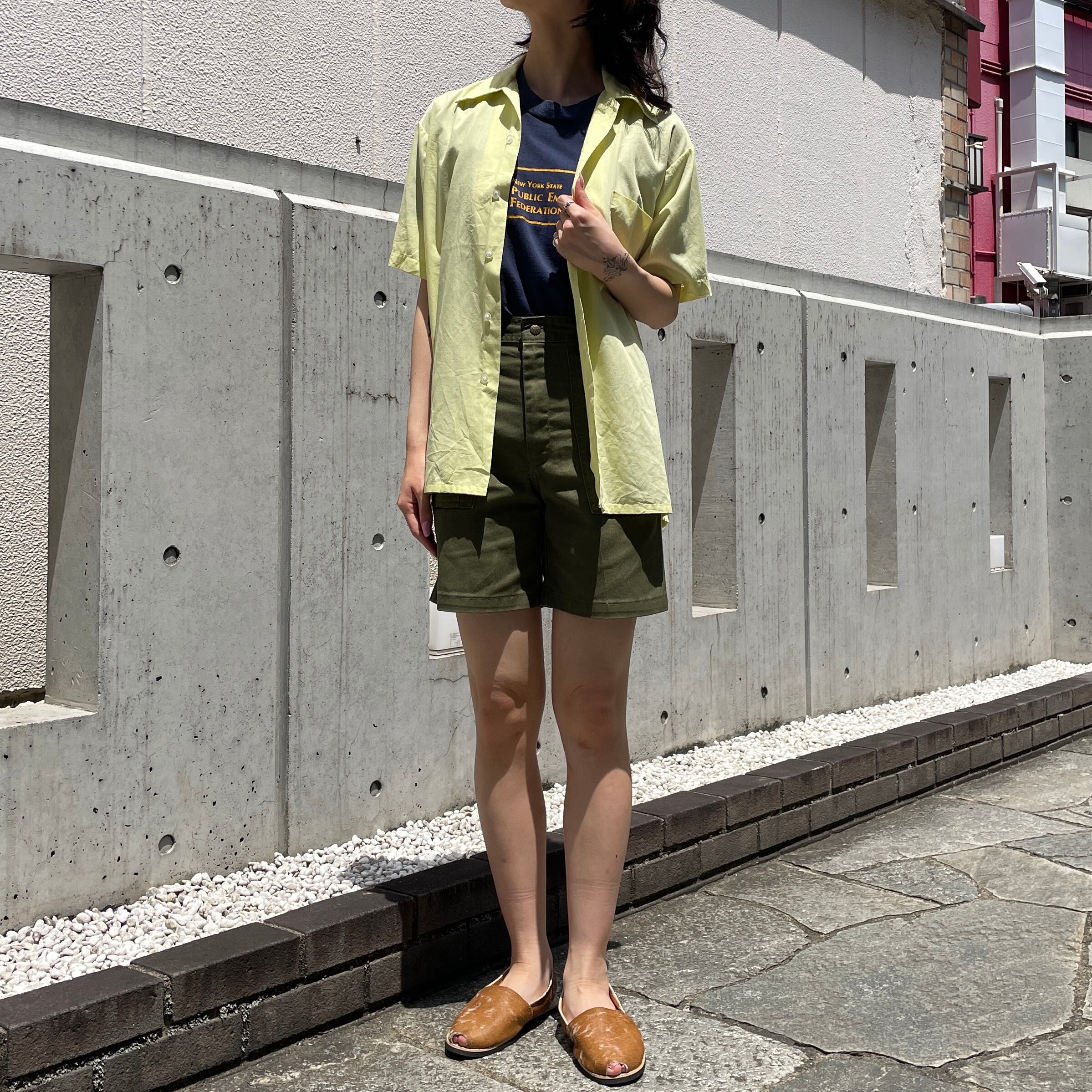 ライトイエローカラーの半袖シャツ。