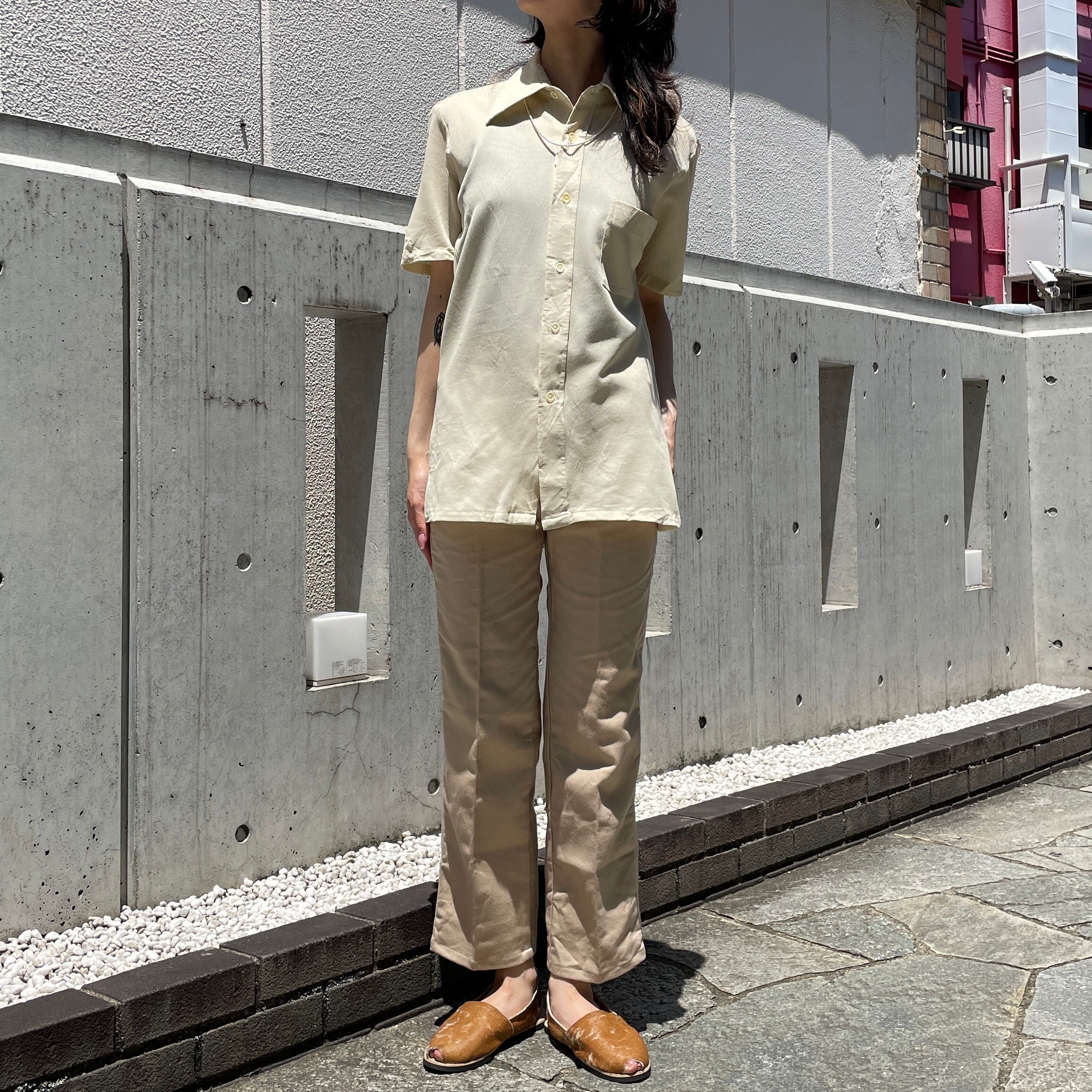 ライトベージュカラーの半袖シャツ。