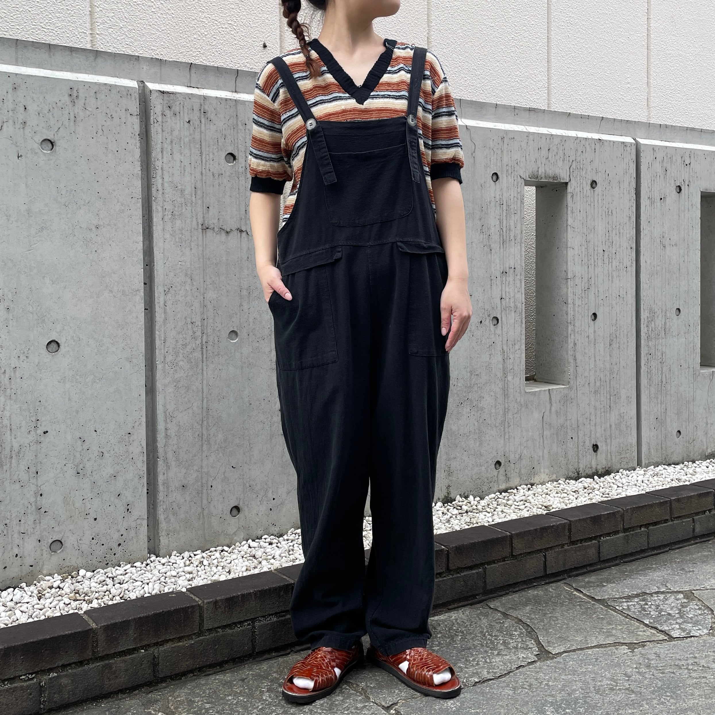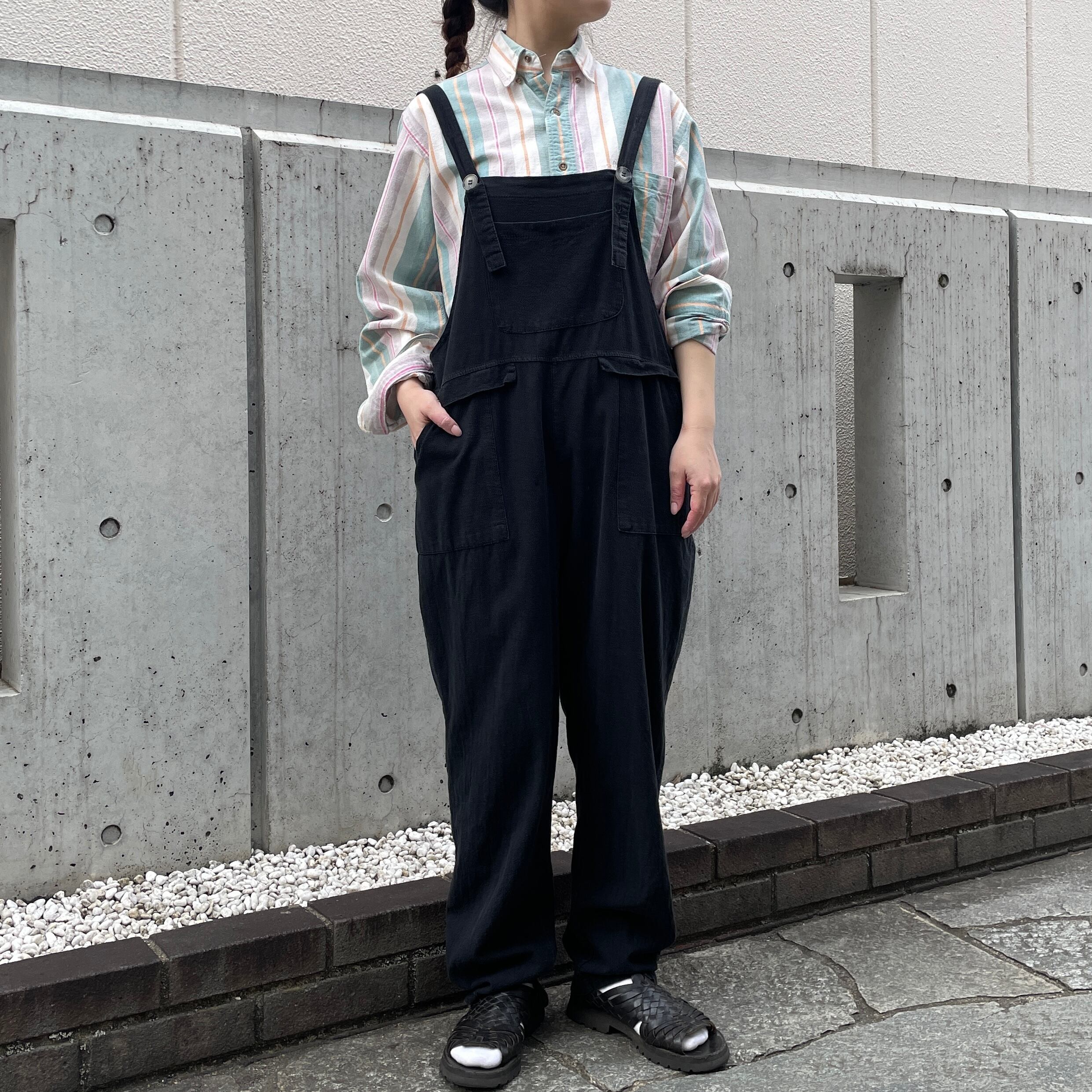 ブラックカラーのオーバーオール。