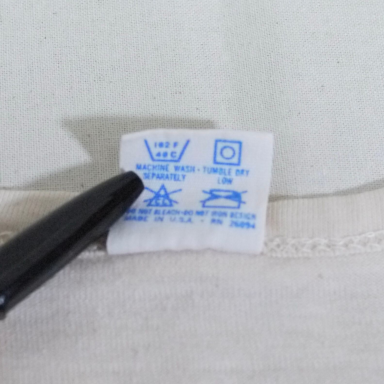 アメリカ製。ポリエステル50%、コットン50%。
