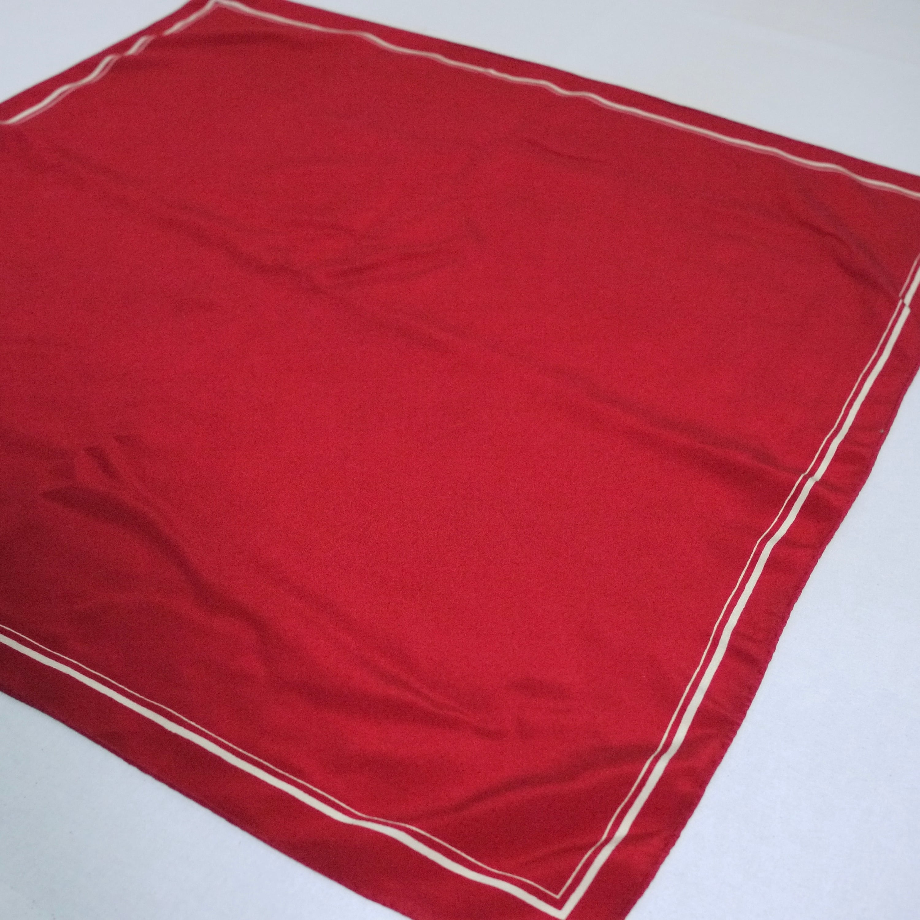 60年代以前のヴィンテージスカーフで品質の良いシルクスカーフに用いられていたディテールですが、こちらの商品の詳しい年代は不明です。