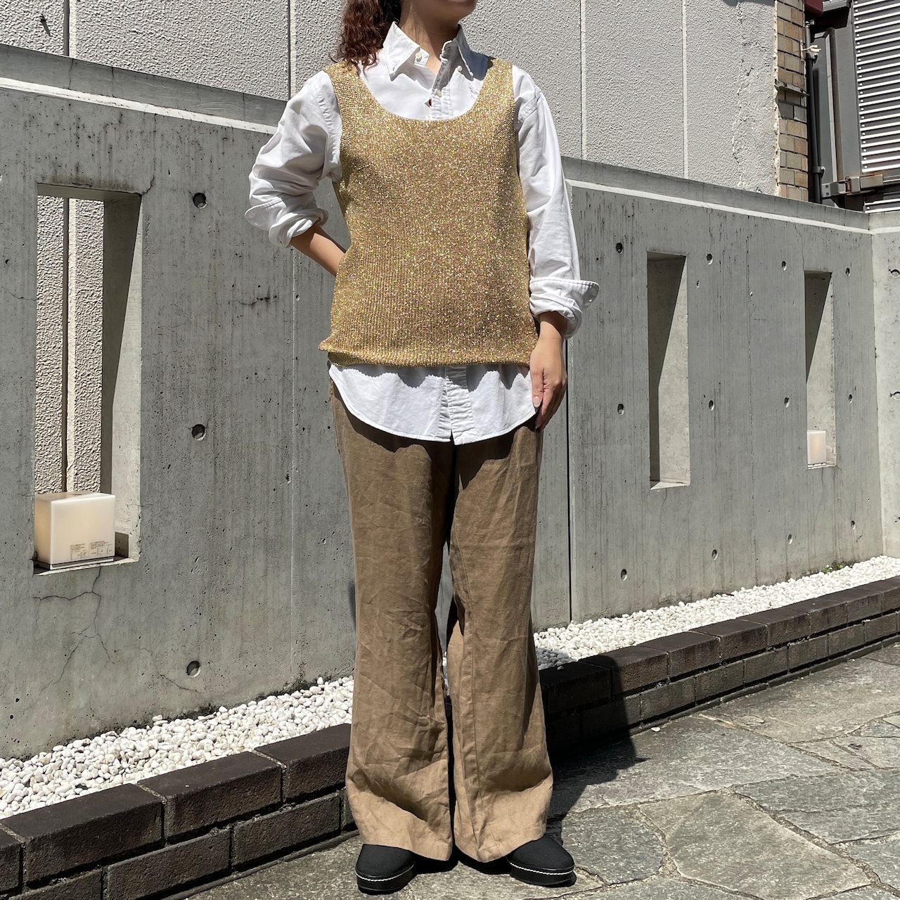 リネン特有の涼しげな生地感とゆったりとしたシルエットがマッチしています。