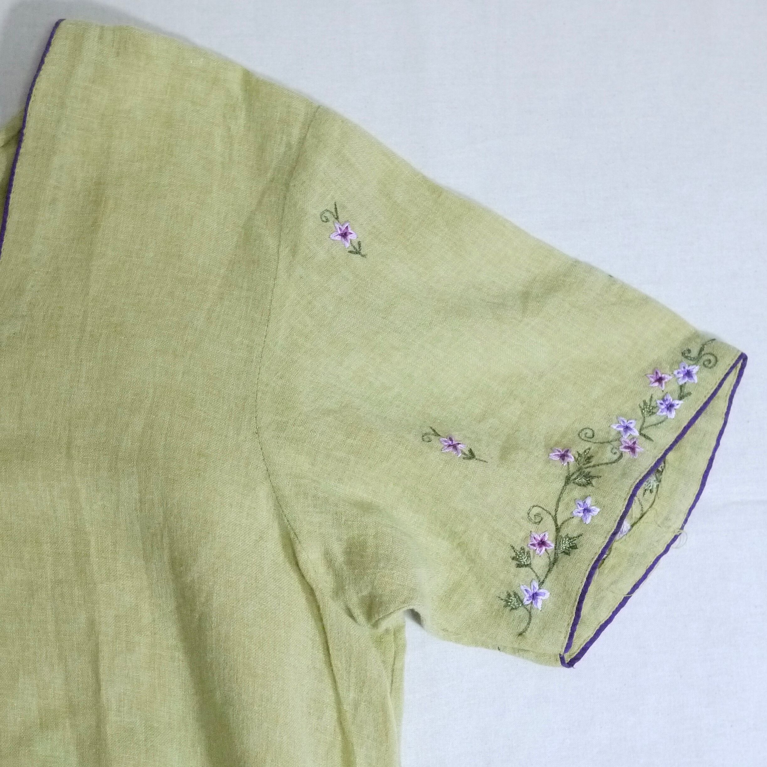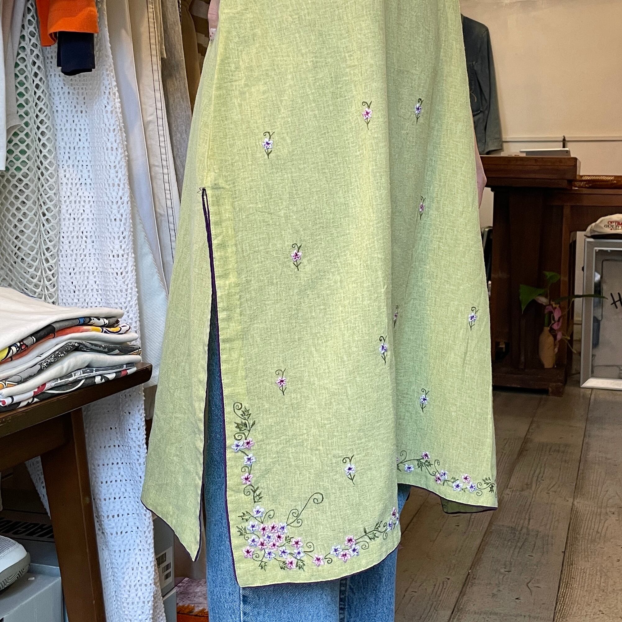 小花柄の刺繍デザインが軽やかな生地感とマッチしていて季節感を演出。