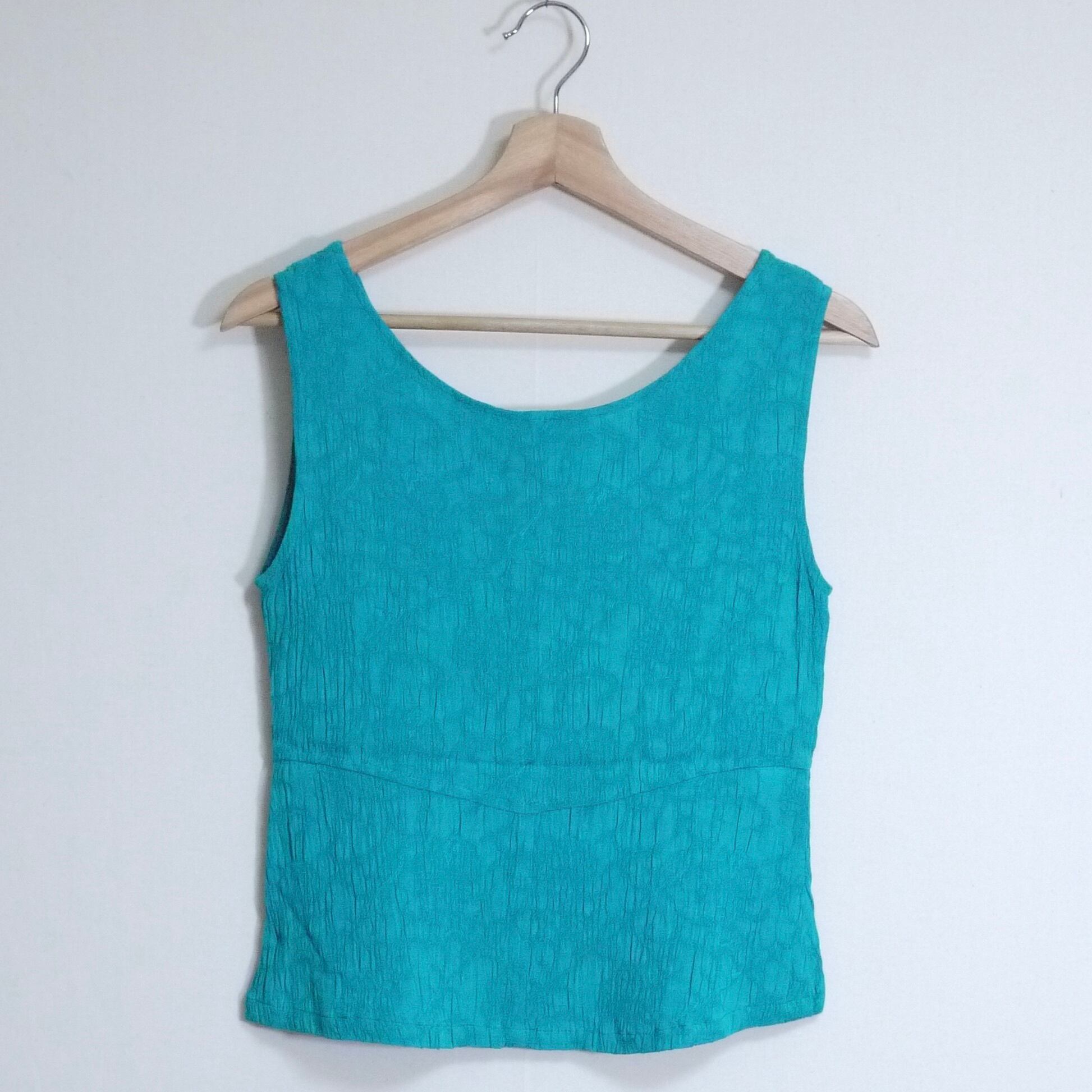 グリーン系カラーのスリーブレストップス(タンクトップ)。