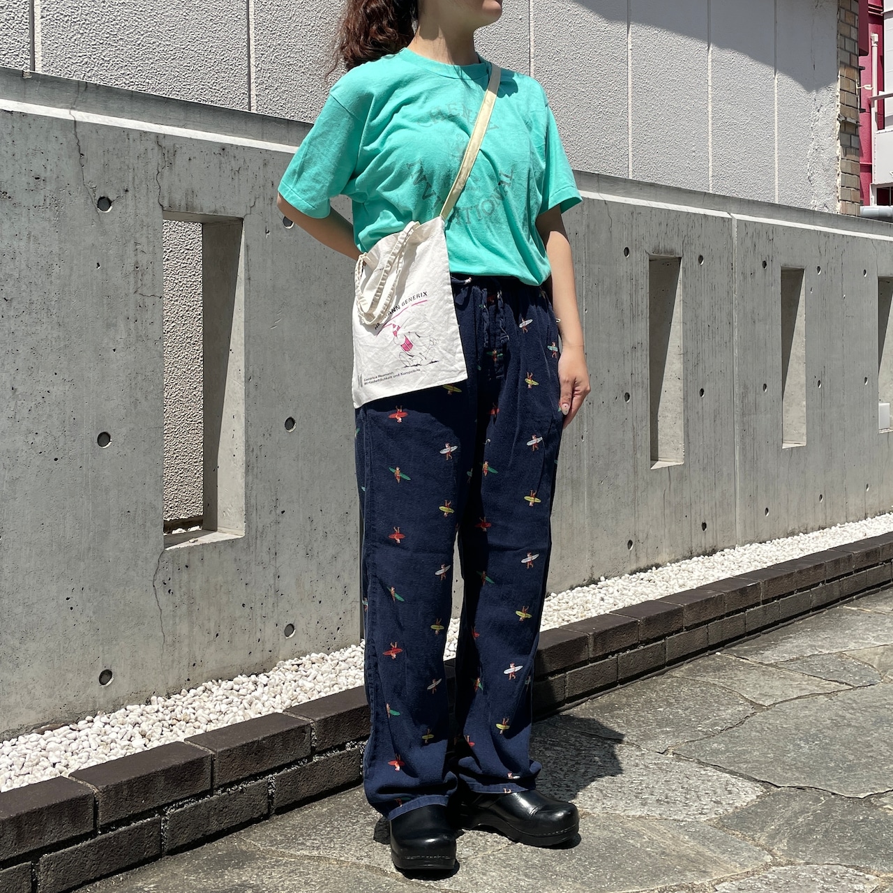 ウエストを紐で調節できるイージーパンツ仕様でポケット付き。