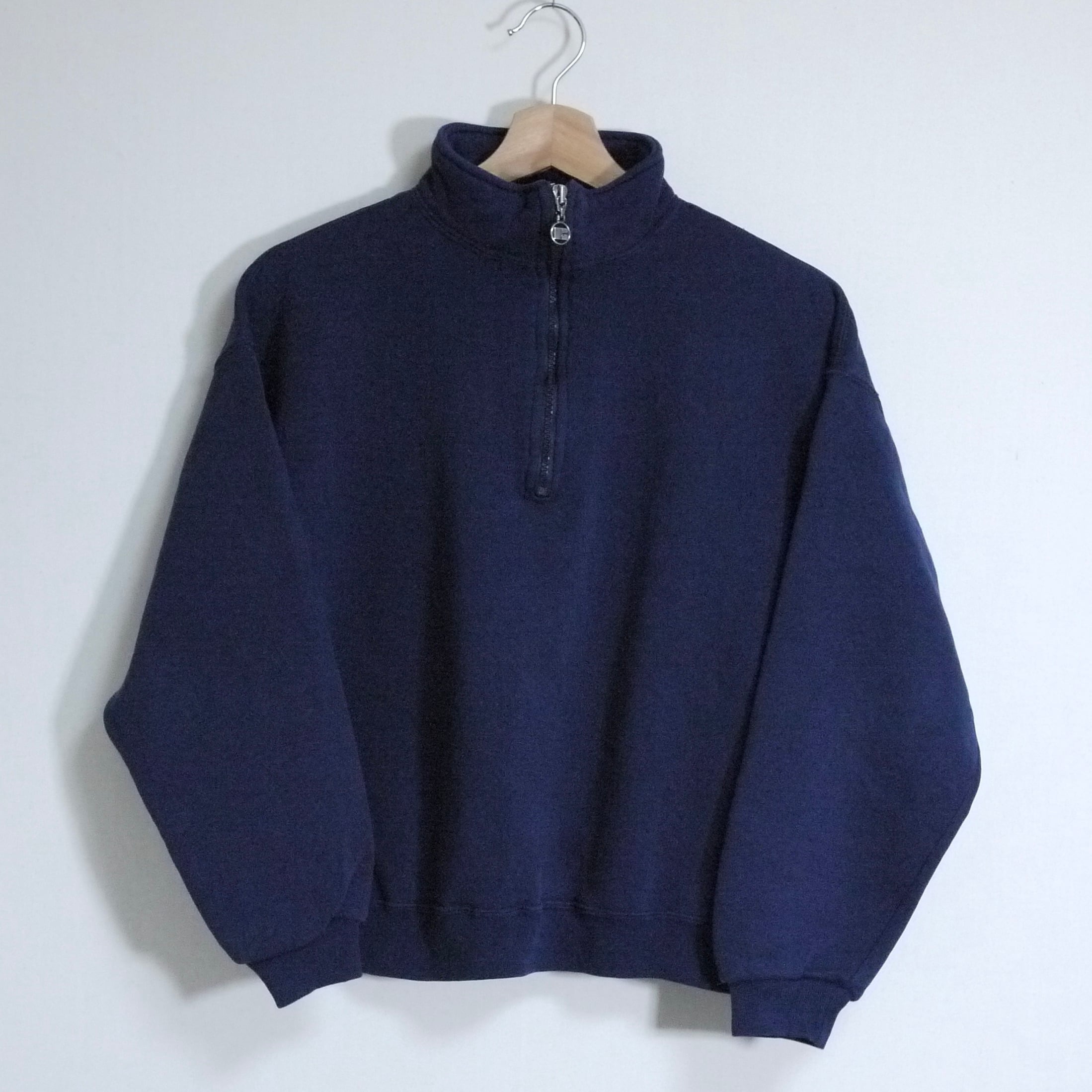 スタンドカラーにハーフジップタイプでシンプルな無地デザイン。