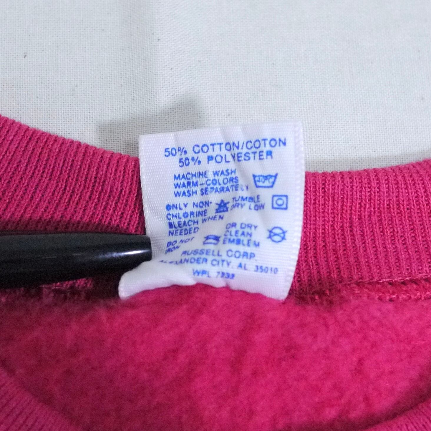 アメリカ製。コットン50%、ポリエステル50%。