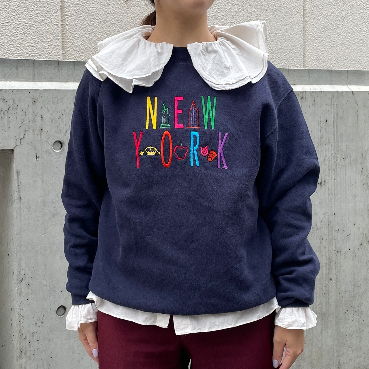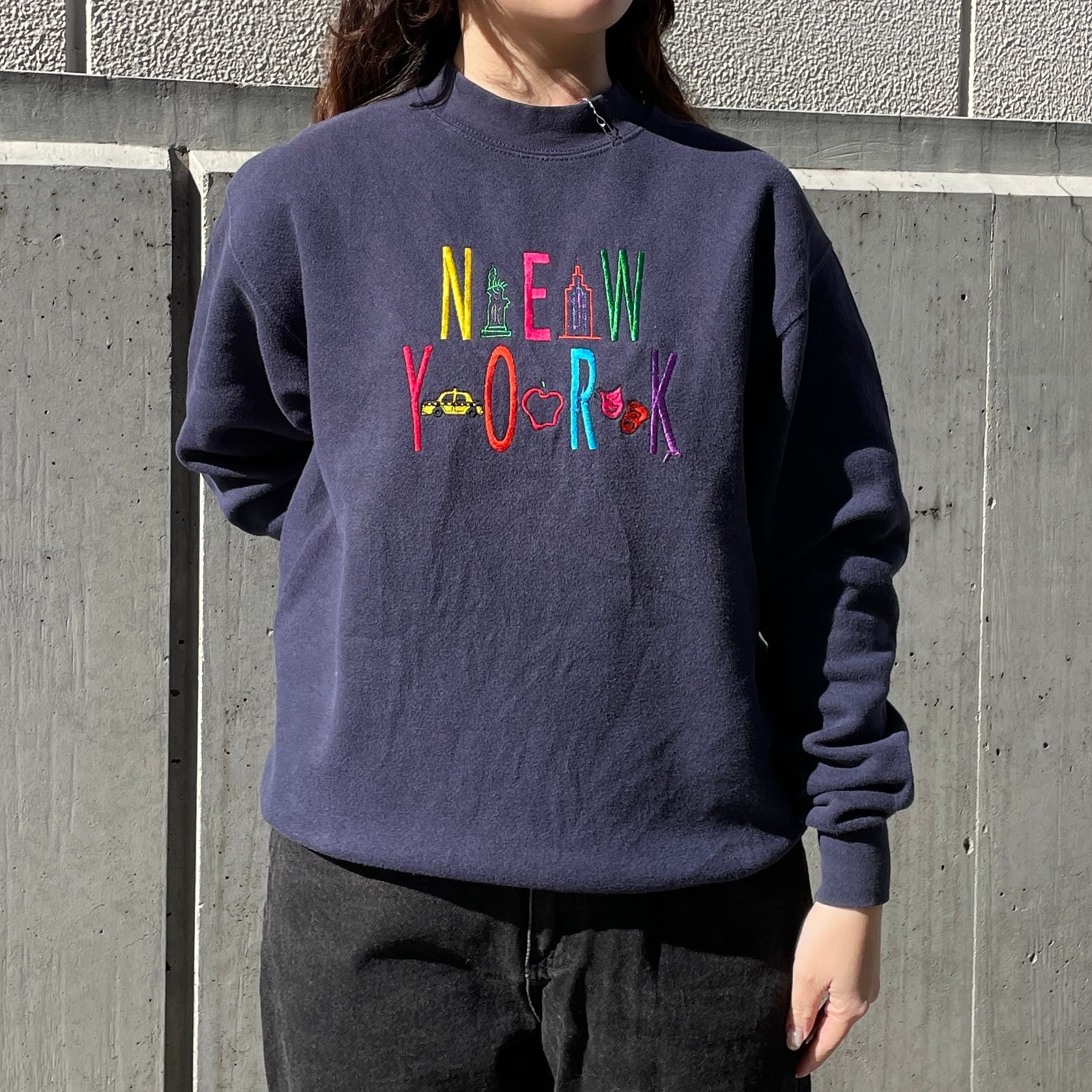 ネイビーカラーのスウェット。