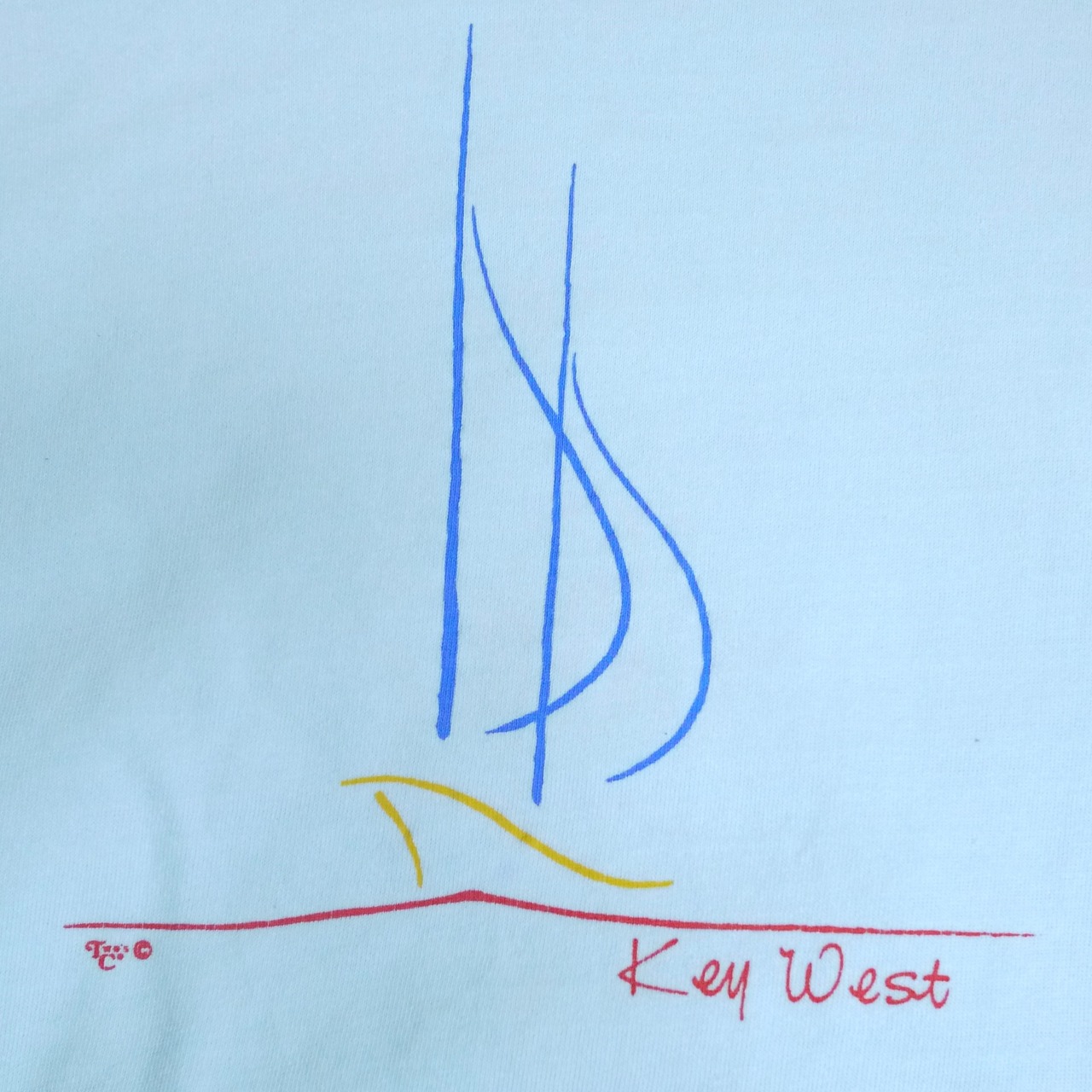 ヨットモチーフのカラフルで古着らしいグラフィック。