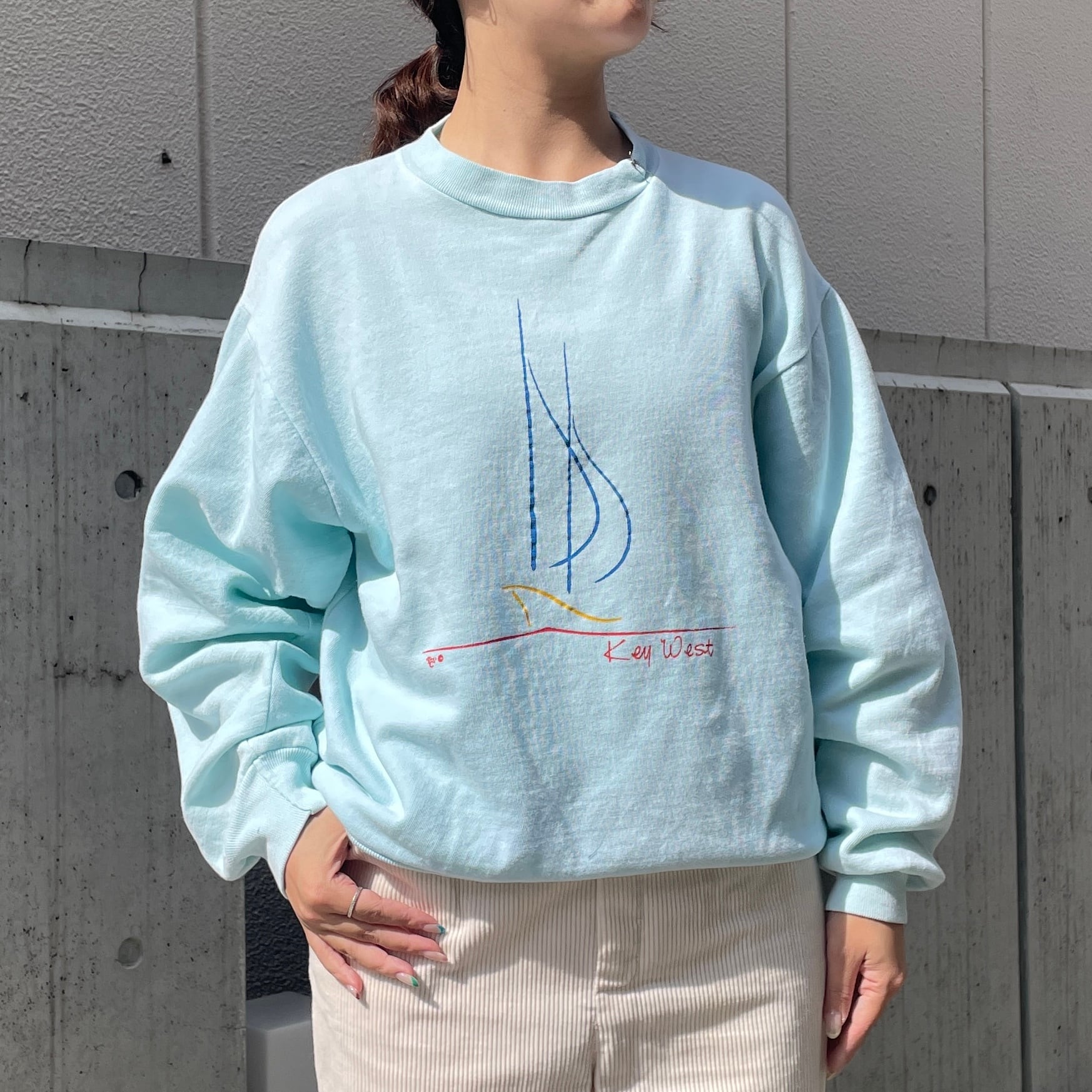 ライトブルーカラーのスウェット。