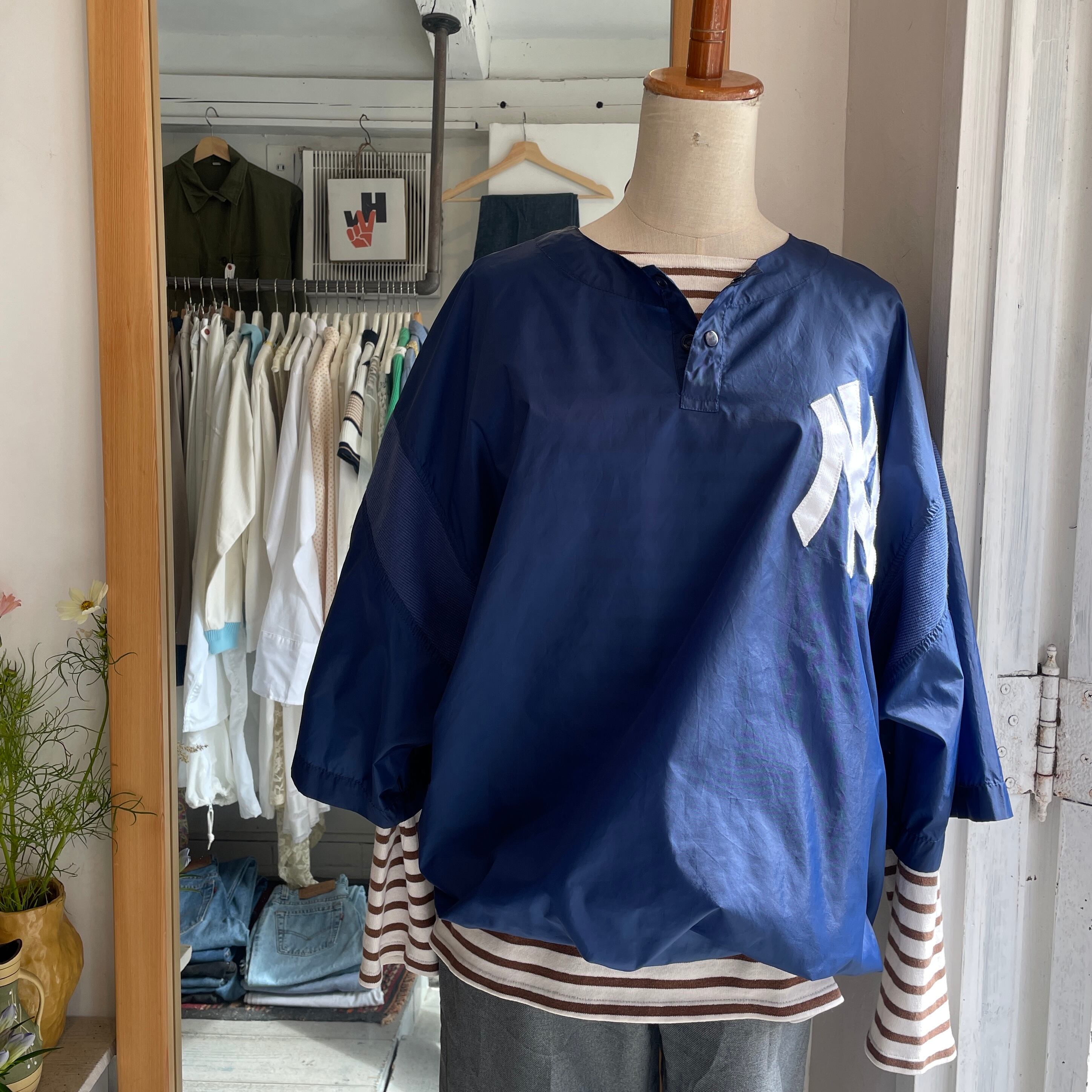 ネイビーカラーのプルオーバージャケット。