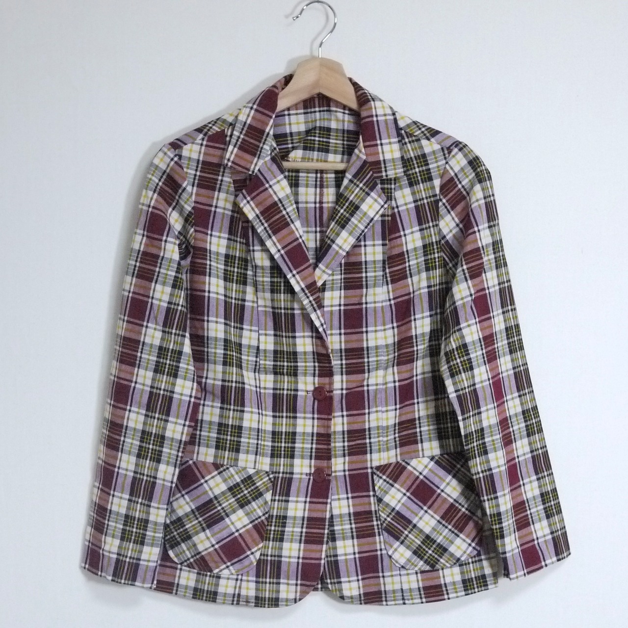 バーガンディカラーを中心とした好配色なチェック柄デザイン。