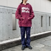 バーガンディカラーのリバースウィーブパーカ。