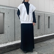 ワンピースやハイウエストなボトムスとのレイヤードがしやすいシルエット。