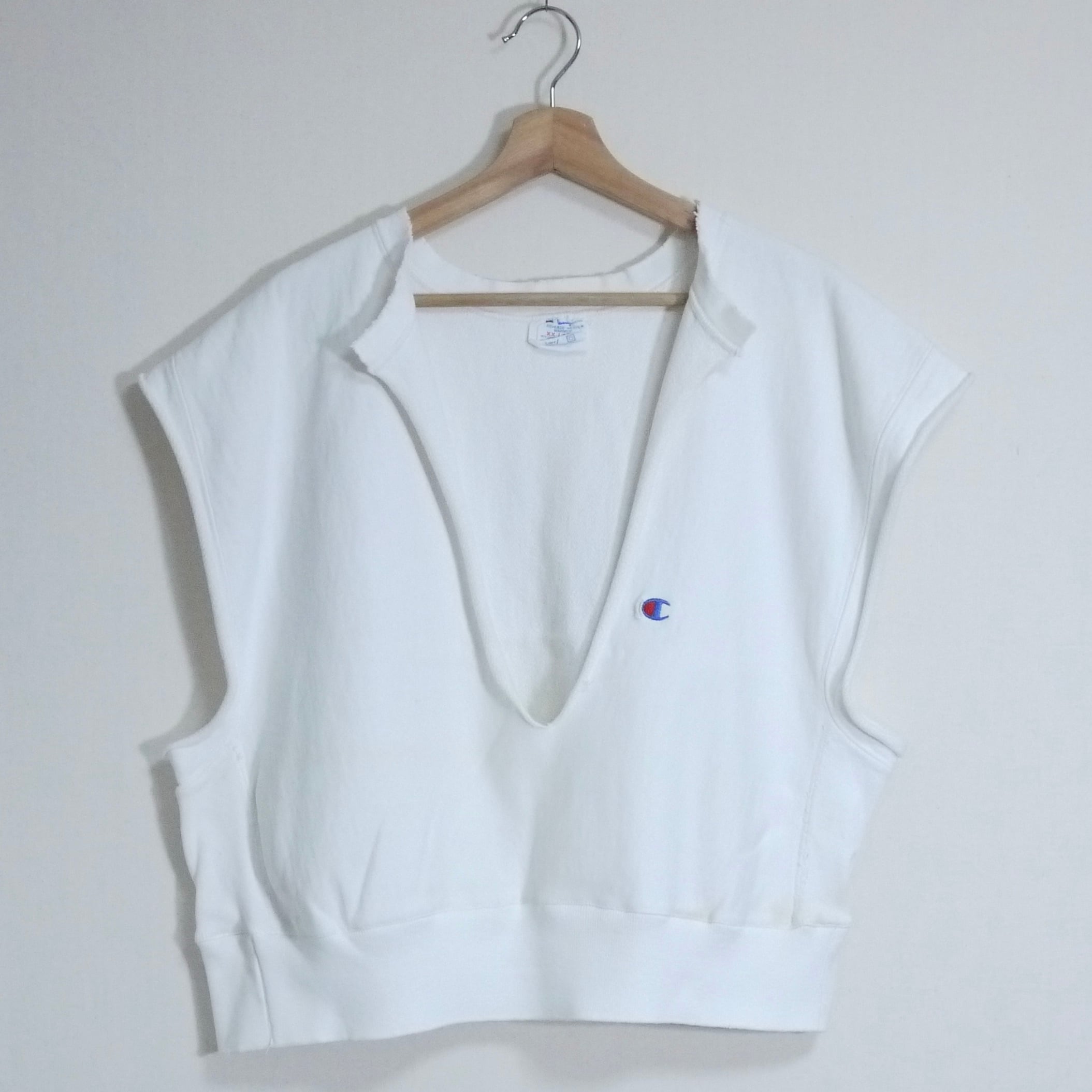 前所有者による袖のカットオフ、ネックの切り込みのカスタムがされています。