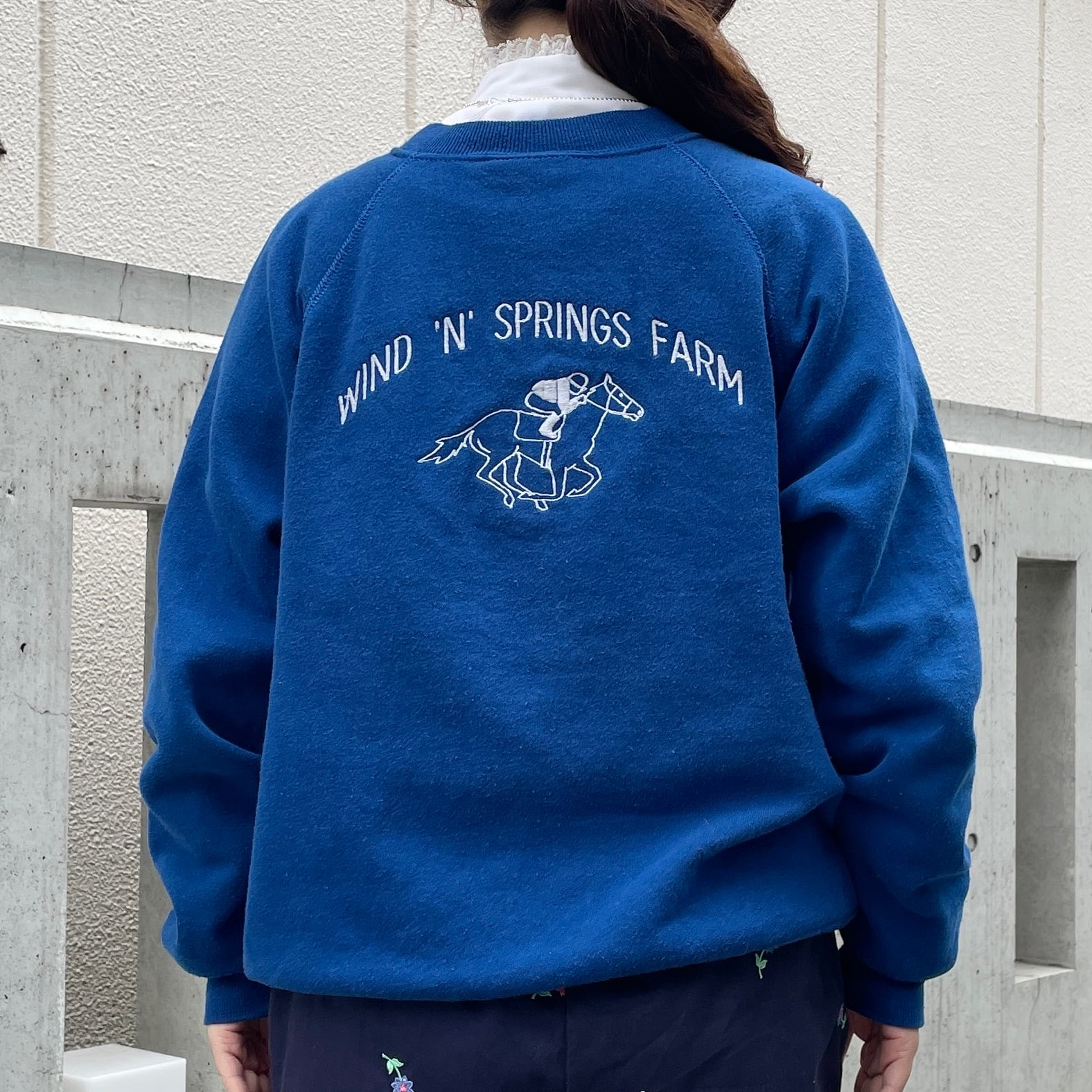 ブルーカラーのスウェット。