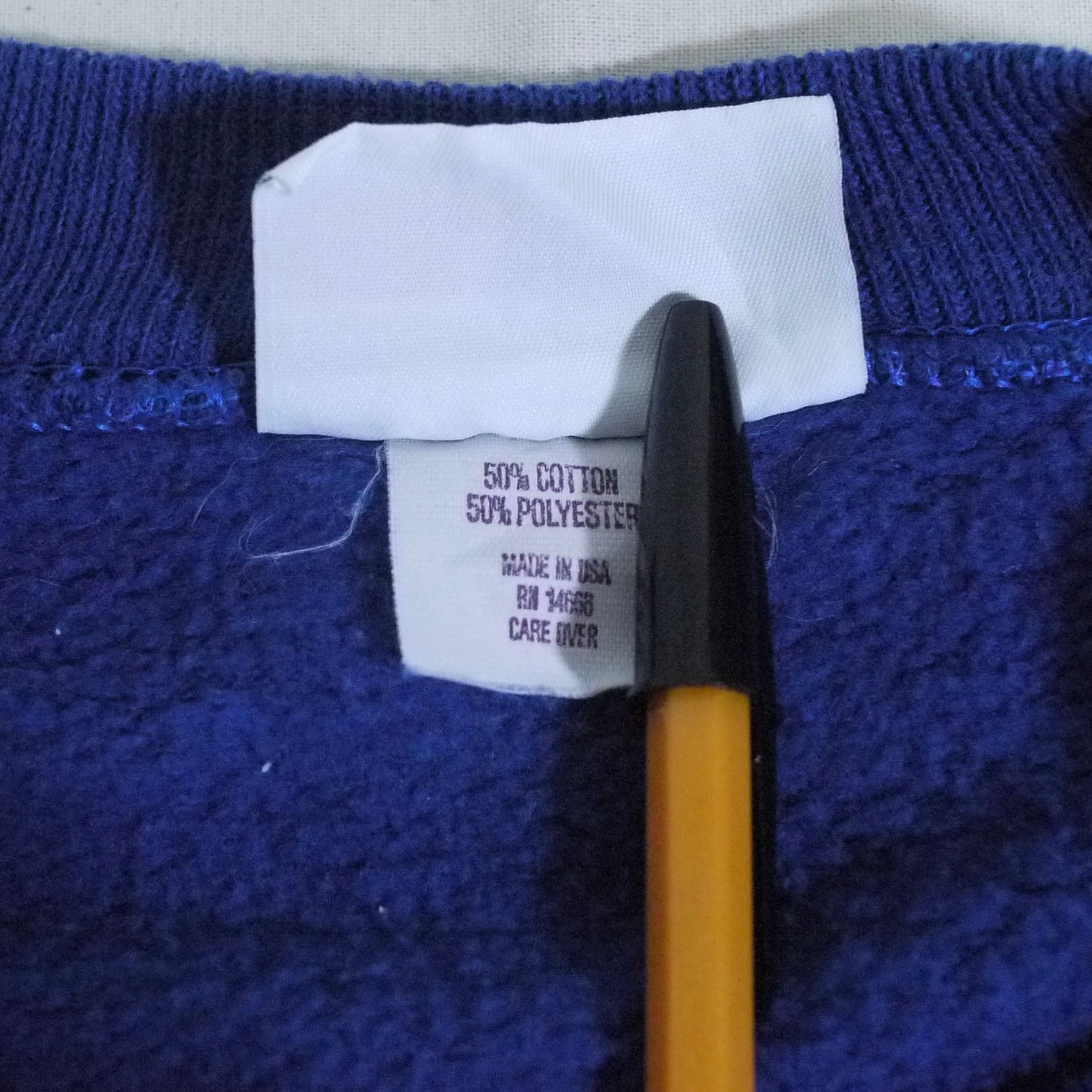 アメリカ製。コットン50%、ポリエステル50%。