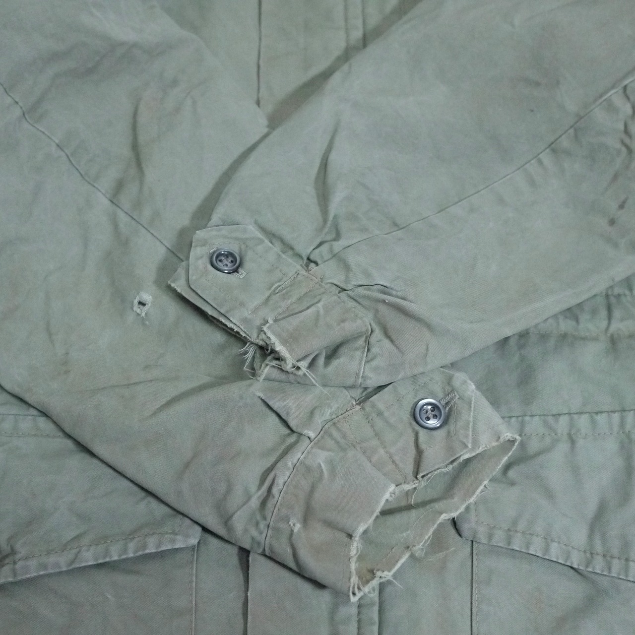 状態は、右袖のボタンが一つ欠けています。両袖口にほつれ。右袖に小穴。内側含めて所々に細かな汚れ。その他、全体的に経年による使用感はありますが、着用に問題はありません。