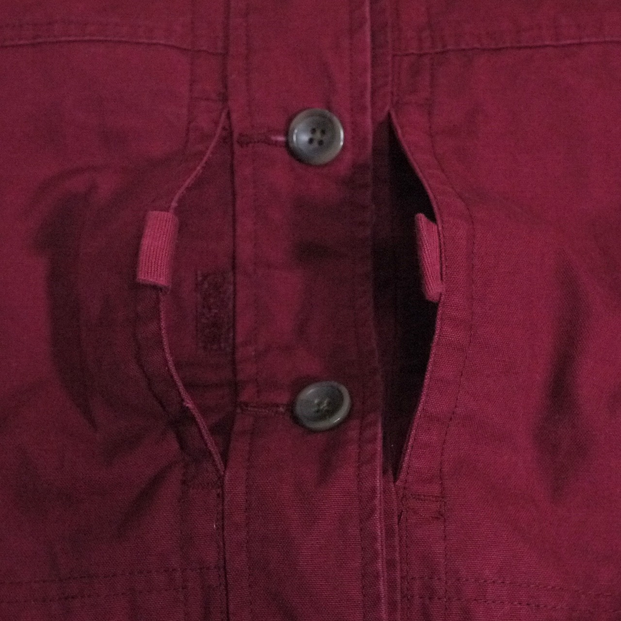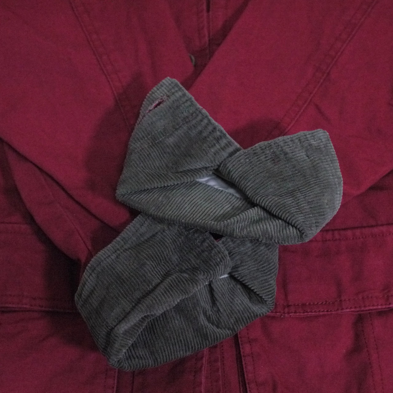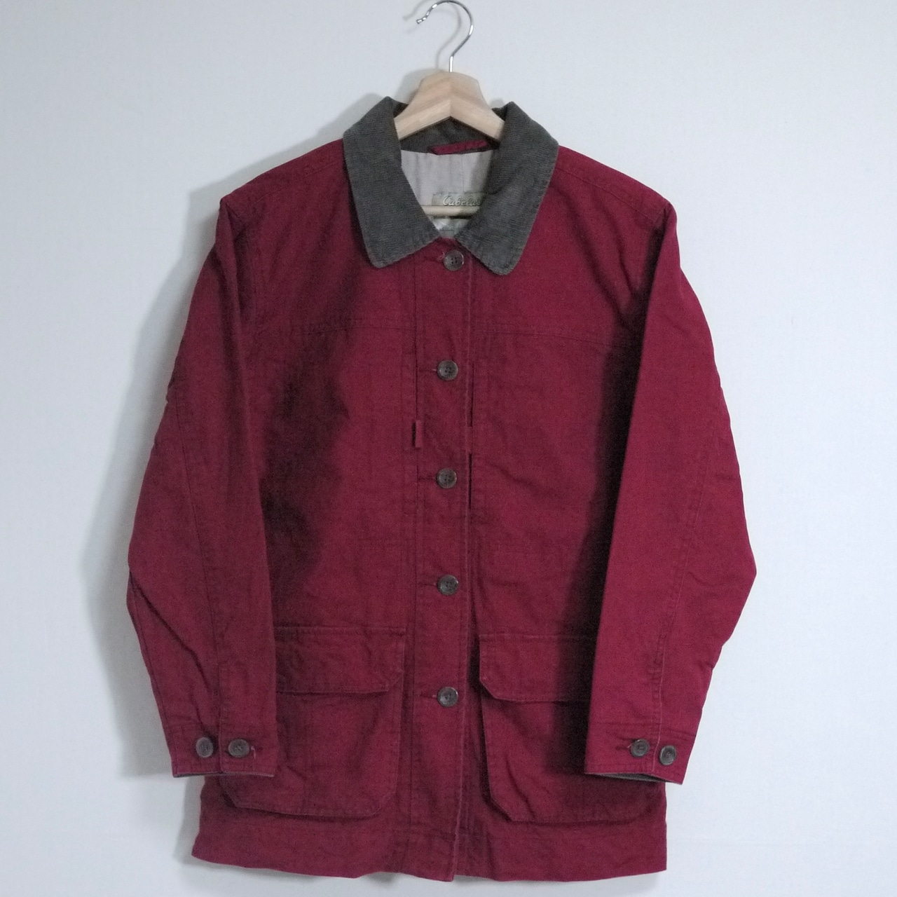 襟や袖口のコーデュロイ地の切り返えデザインなどベーシックなハンティングジャケットのディテールが残っていますが、比較的近年のアイテムのためタウンユースしやすいデザインにアップデートされています。