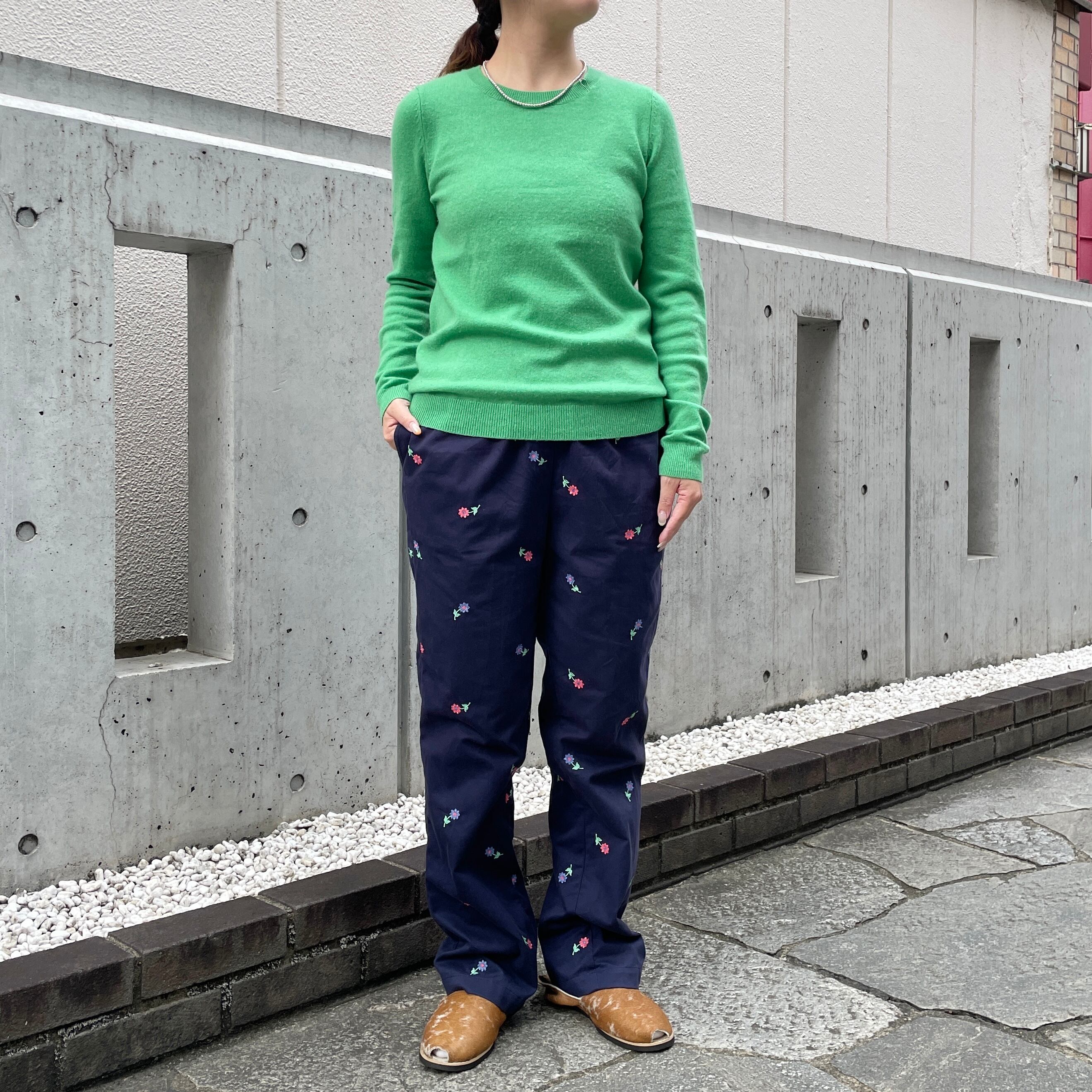 ネイビーカラーのイージーパンツ。