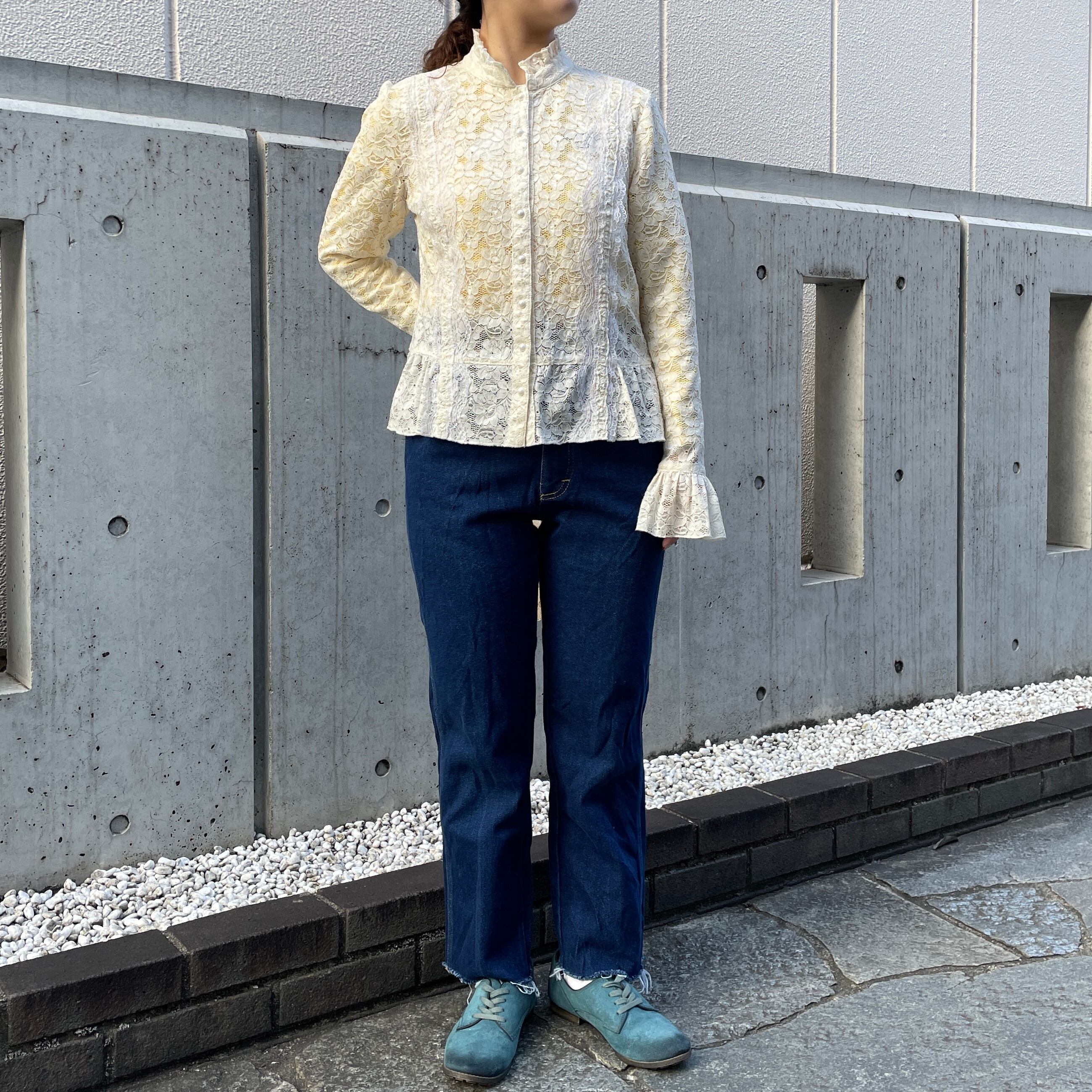 状態は、ネック周辺の生地が薄くなっています。所々にブリーチによる色抜けのような汚れ。その他、全体的に使用感ありますが、着用に問題はありません。