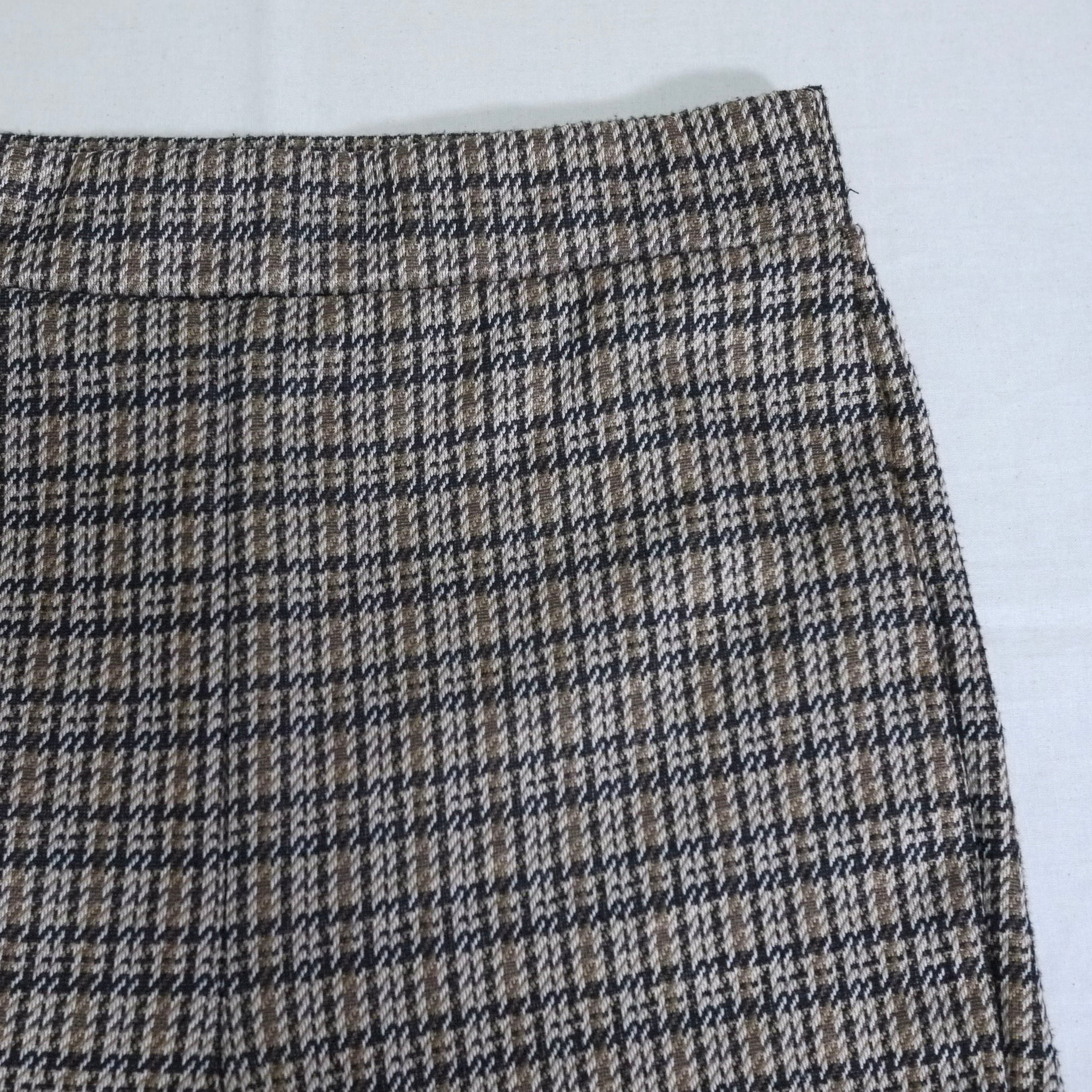 ブラウン系カラーのチェック柄イージーパンツ。